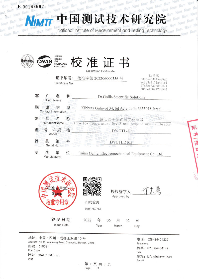 以色列-超低溫干體爐 2022-6-7 本文被閱讀 14777 次
