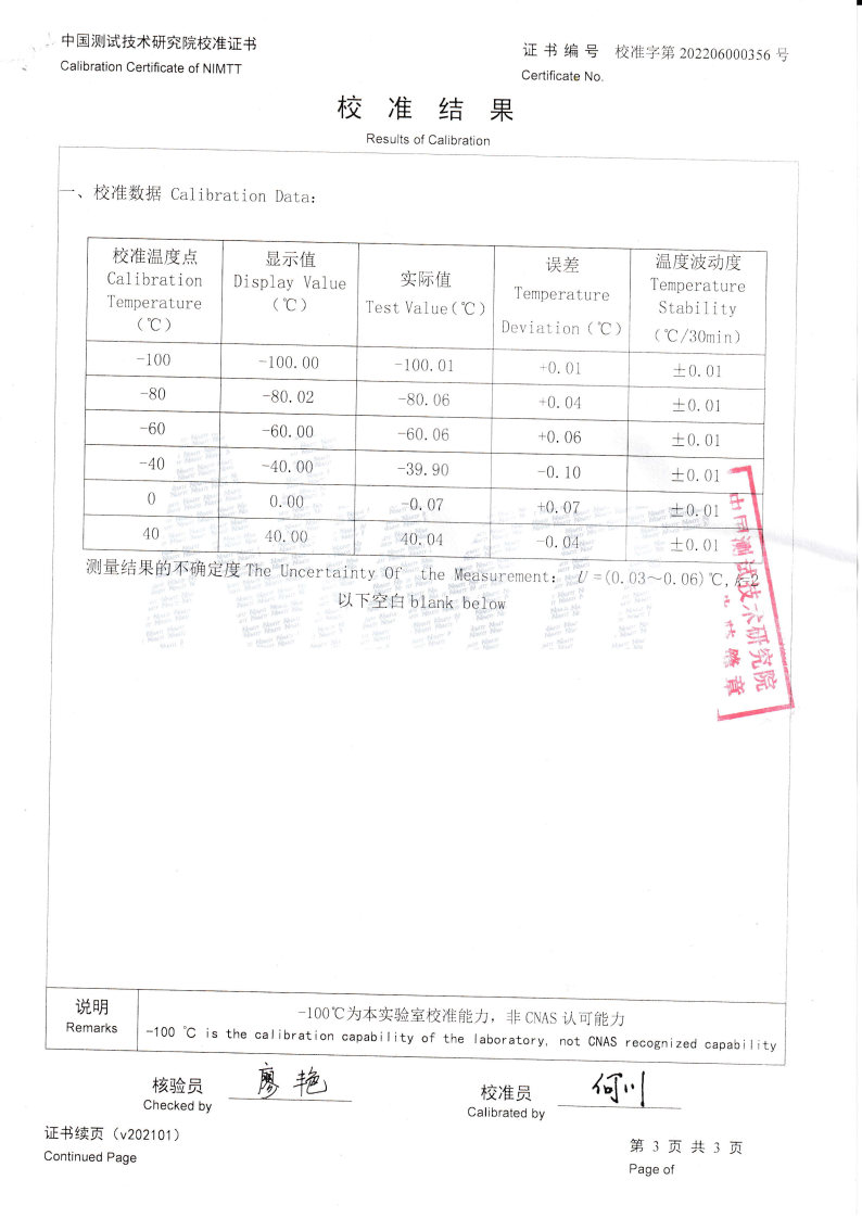 上一條:南昌市計量檢定站-水三相點瓶下一條:高精度制冷恒溫槽(-80~100℃)校準證書