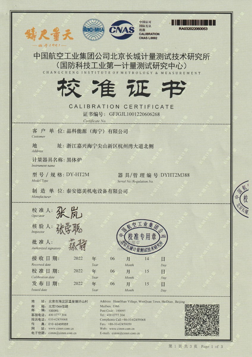 晶科能源(海寧)有限公司-黑體爐 2022-7-5 本文被閱讀 14934 次