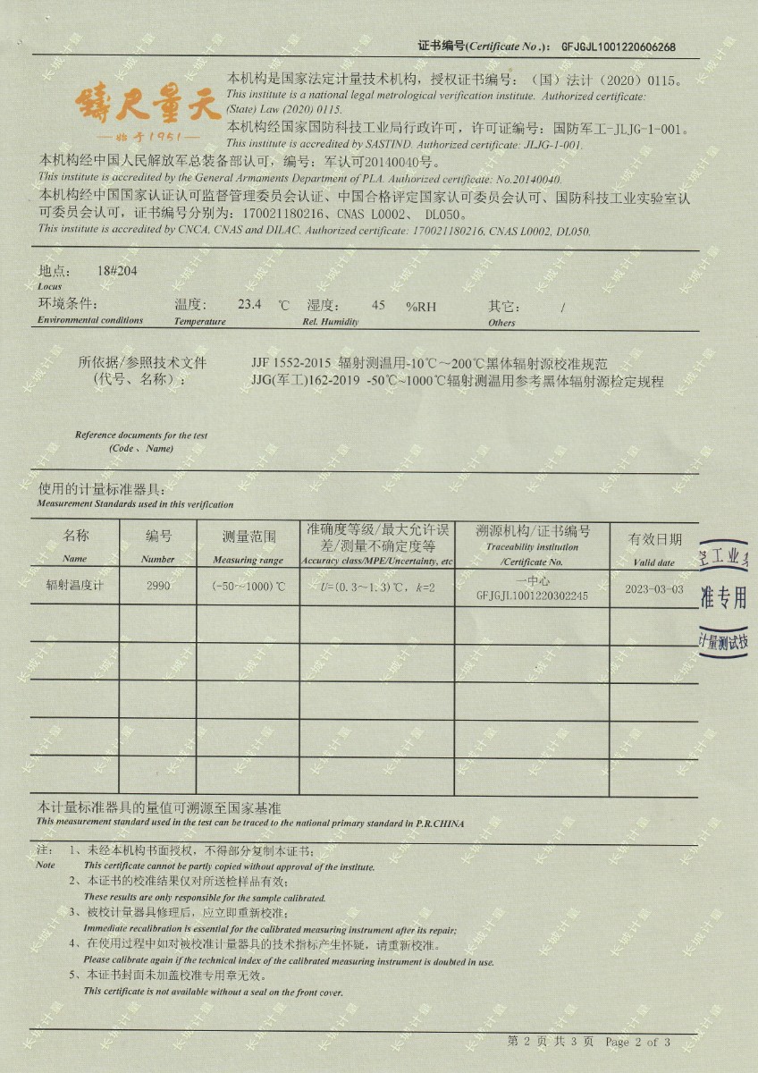 上一條:中睿(天津)檢驗檢測有限公司-冷鏡式露點儀檢定證書下一條:高精度制冷恒溫槽(-80~100℃)校準證書
