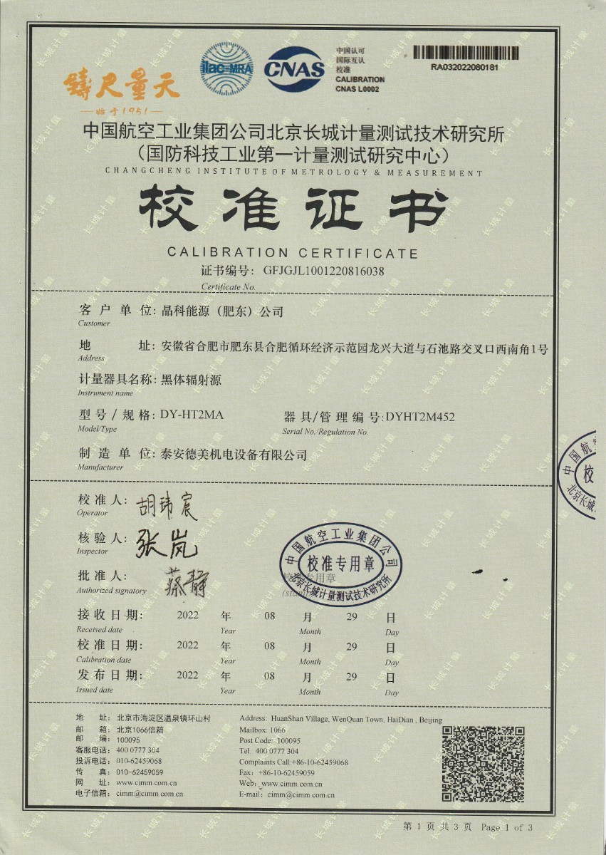 晶科能源(肥東)公司-黑體輻射源 2022-9-5 本文被閱讀 13130 次