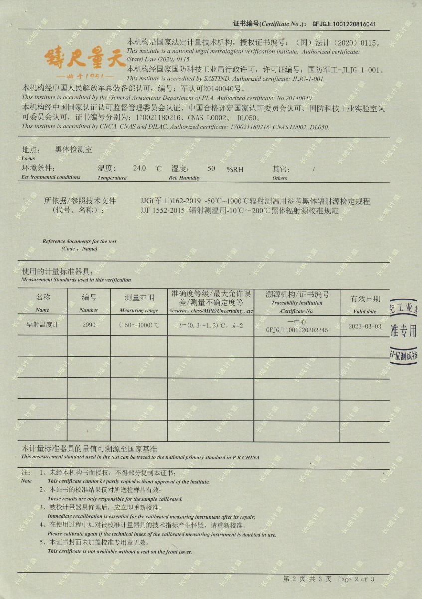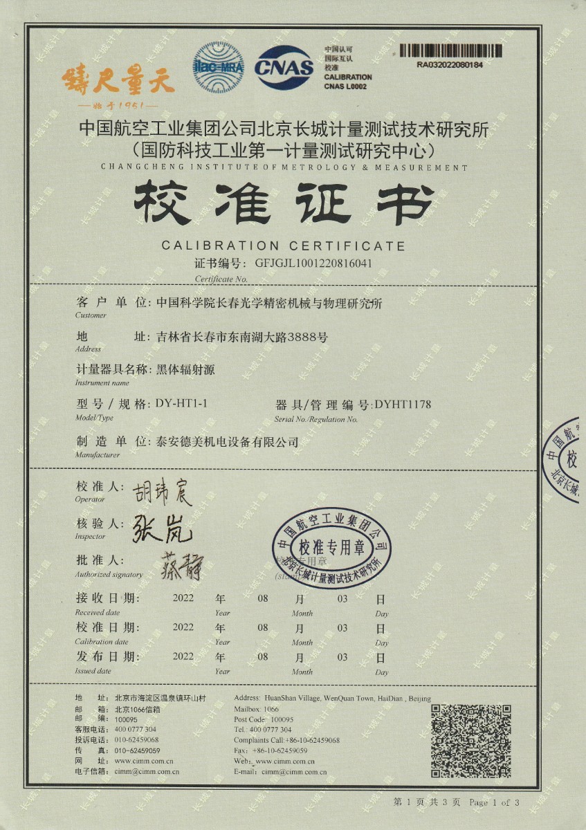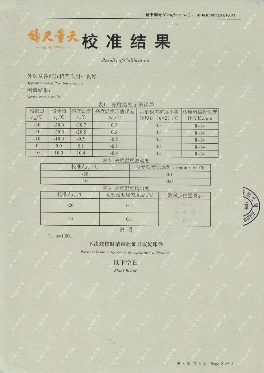 | 上一條:晶科能源(金昌)公司-黑體輻射源 | 下一條:高精度制冷恒溫槽(-80~100℃)校準(zhǔn)證書(shū) |