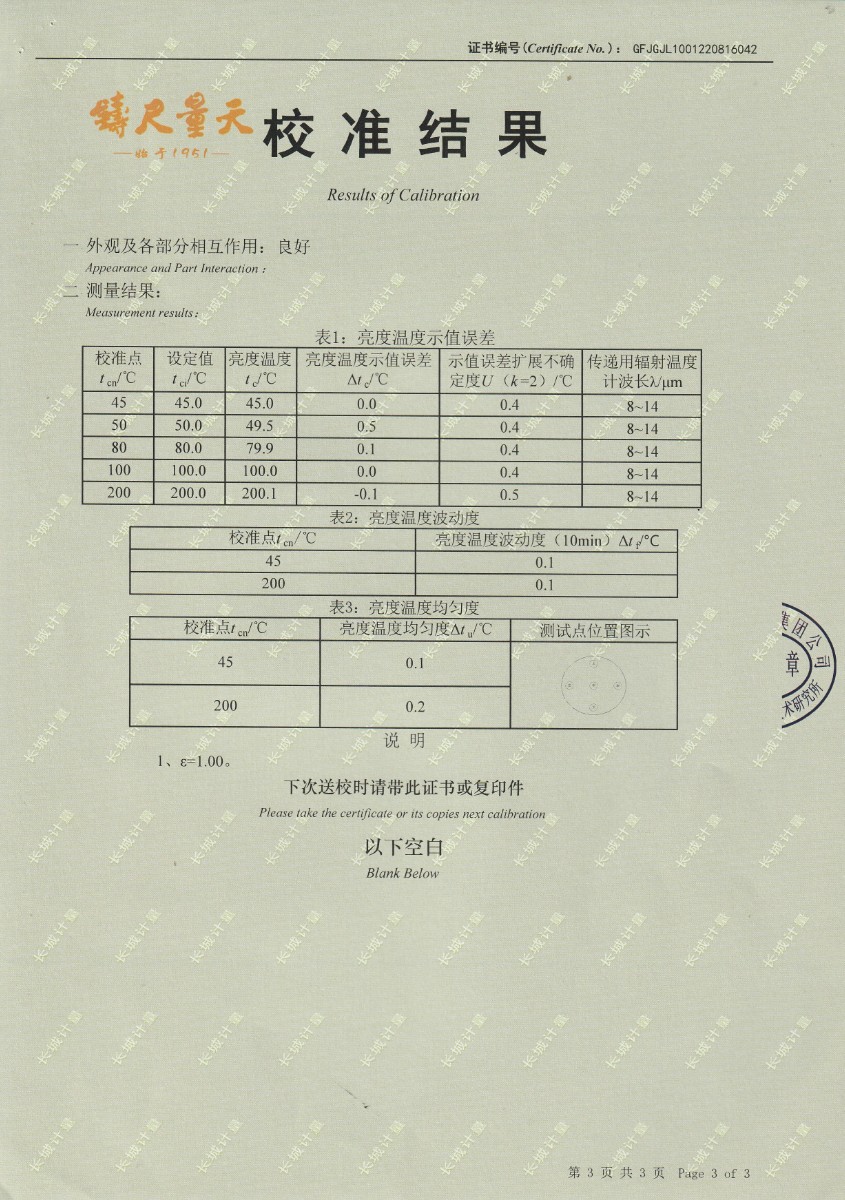 | 上一條:中國科學(xué)院長春光學(xué)精密機械與物理研究所-黑體爐DY-HT1-11 | 下一條:高精度制冷恒溫槽(-80~100℃)校準(zhǔn)證書 |