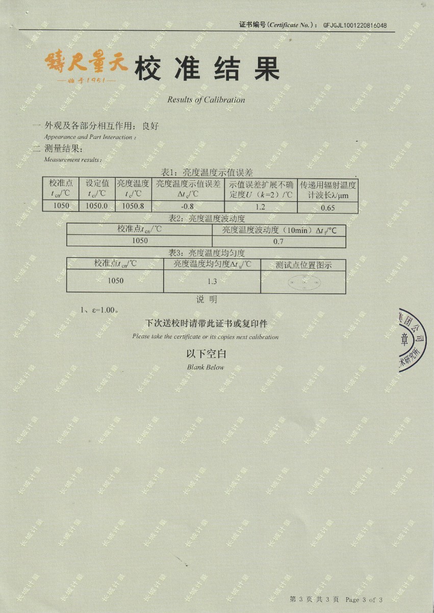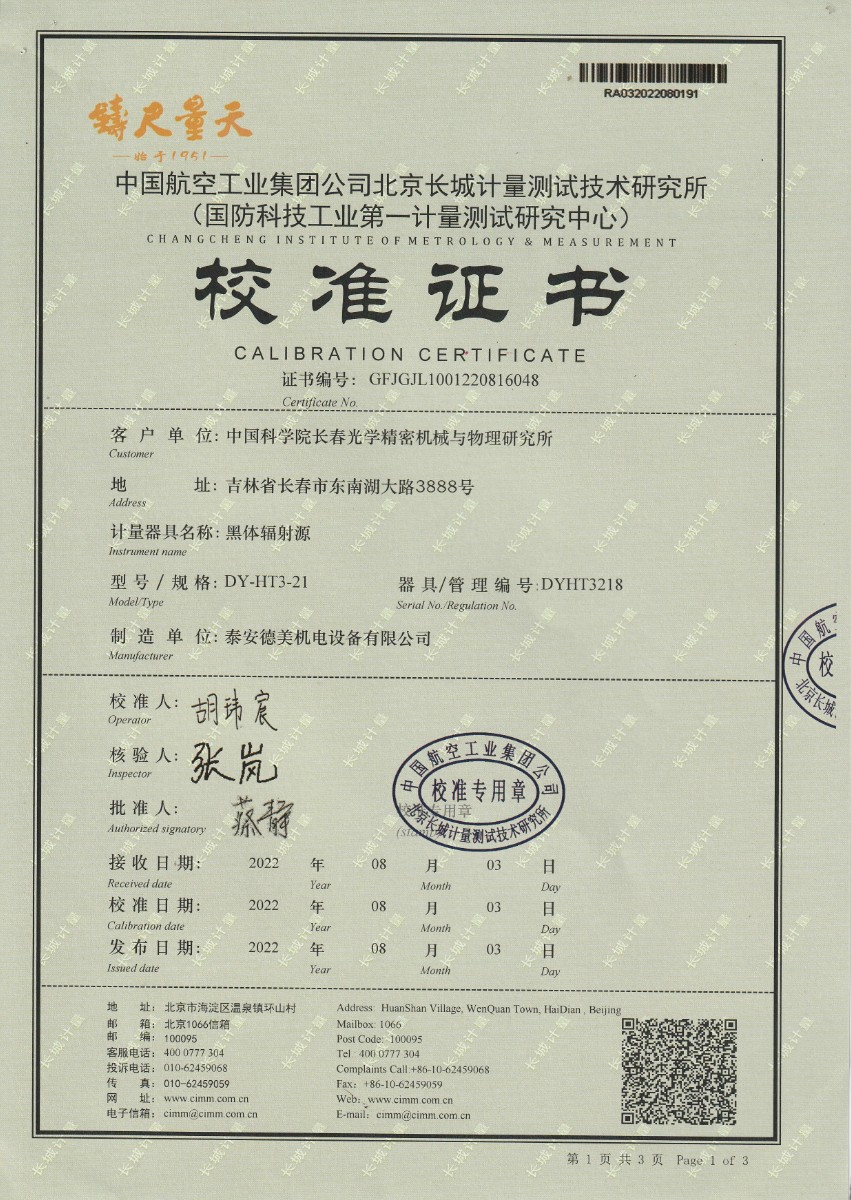 上一條:中國科學院長春光學精密機械與物理研究所-黑體爐DY-HT3-11下一條:高精度制冷恒溫槽(-80~100℃)校準證書