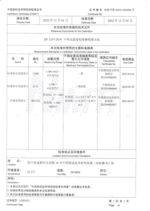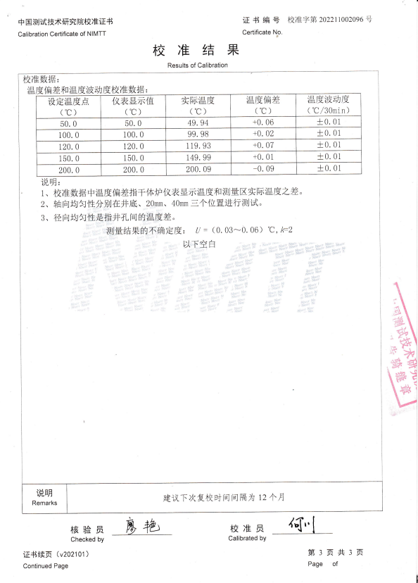 海安橡膠集團股份有限公司 干體爐 校準證書 2022-11-11 本文被閱讀 12192 次
