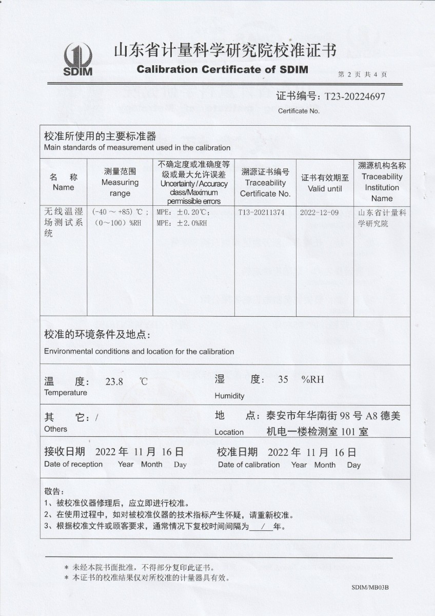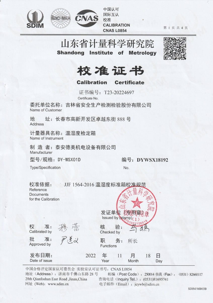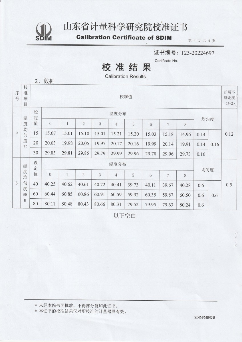| 上一條:海安橡膠集團股份有限公司 干體爐 校準(zhǔn)證書 | 下一條:高精度制冷恒溫槽(-80~100℃)校準(zhǔn)證書 |