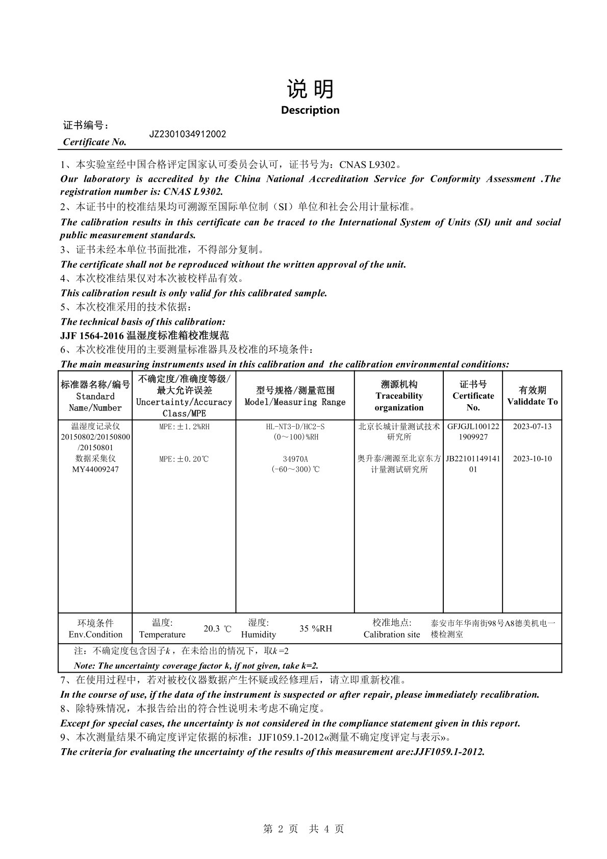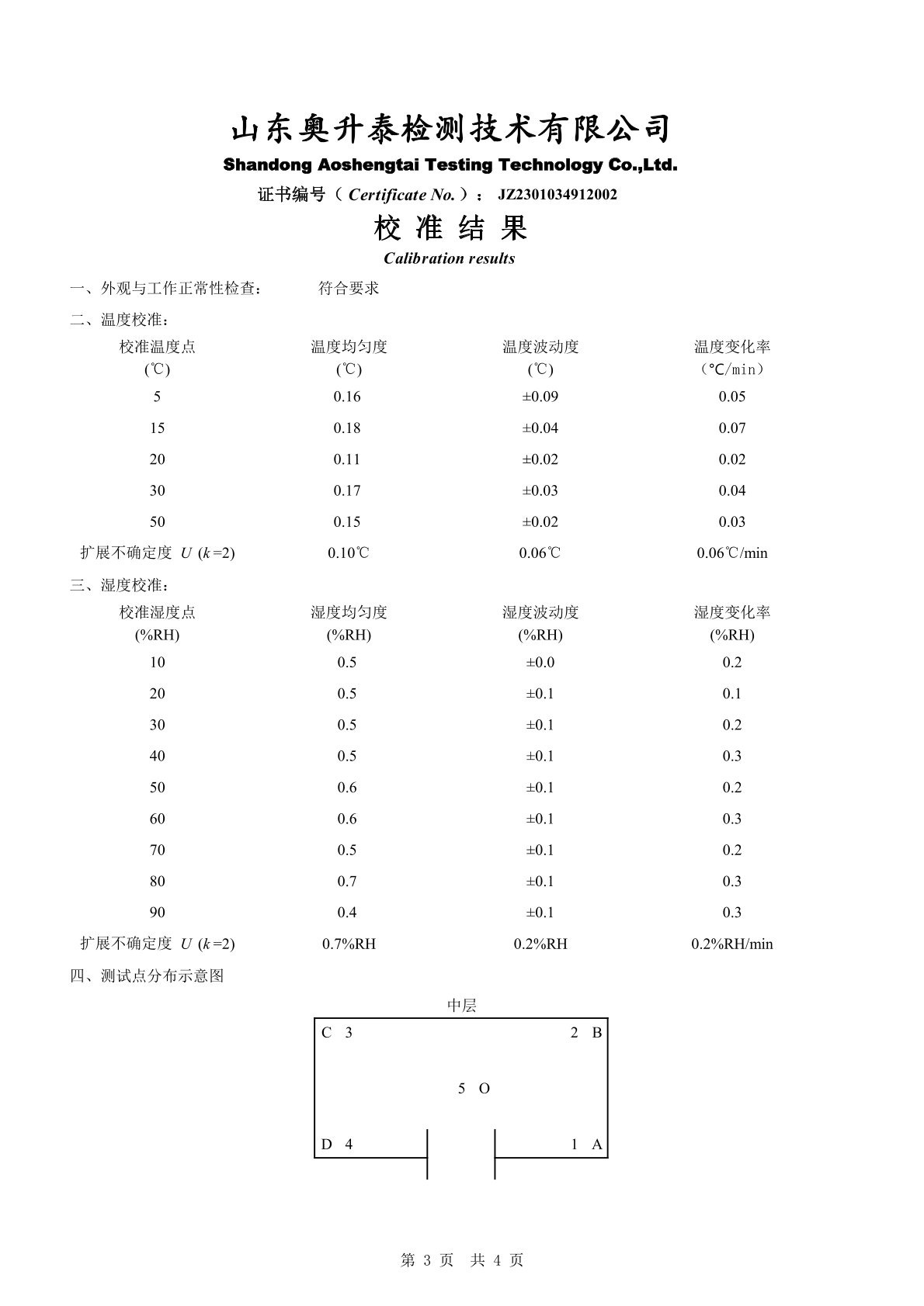 海峽富民生質(zhì)檢技術(shù)服務(wù)有限公司 溫濕度檢定箱校準(zhǔn)證書(shū)(2)