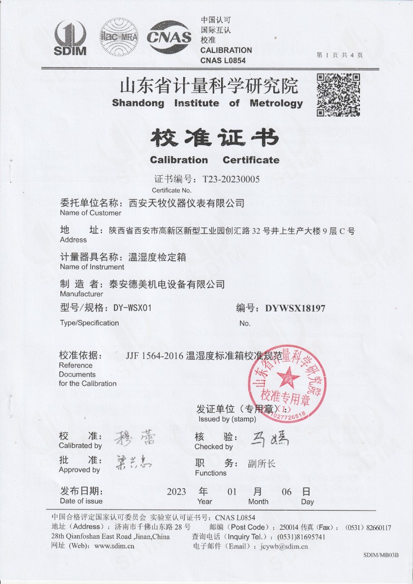 | 上一條:晶科能源(海寧)有限公司 精密冷鏡式露點儀(溫度) 校準(zhǔn)證書 | 下一條:高精度制冷恒溫槽(-80~100℃)校準(zhǔn)證書 |