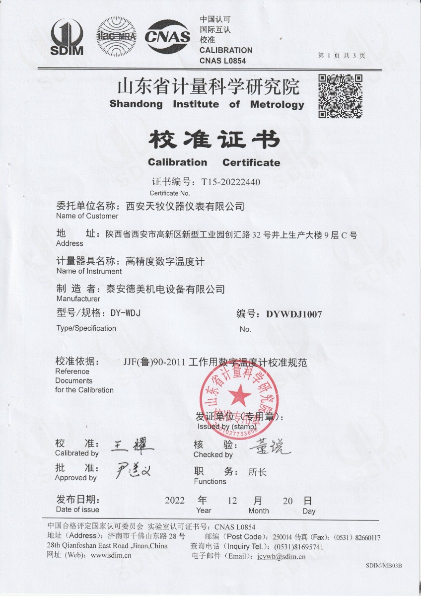| 上一條:西安天牧儀器儀表有限公司 溫濕度檢定箱 | 下一條:高精度制冷恒溫槽(-80~100℃)校準(zhǔn)證書 |