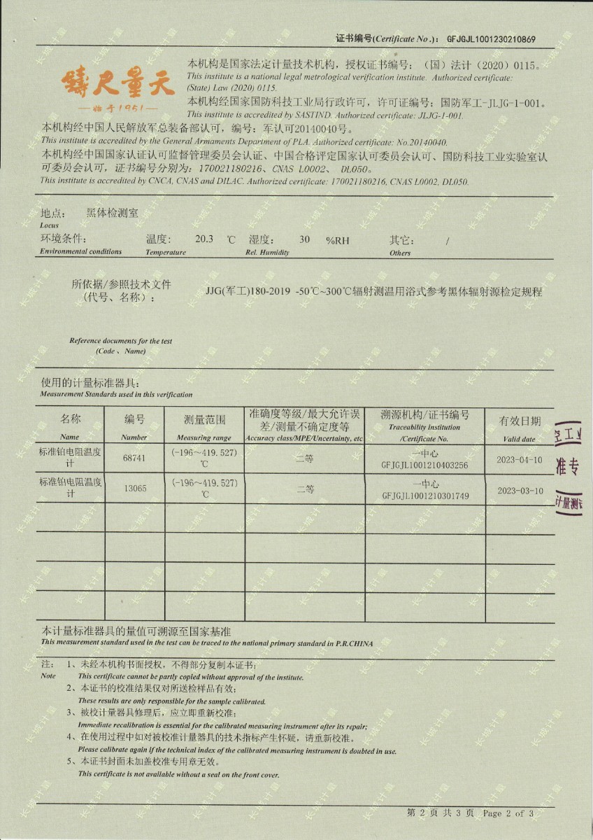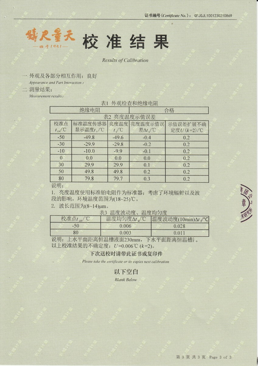 | 上一條:博納檢測認證有限公司 低溫黑體輻射源 校準證書 | 下一條:高精度制冷恒溫槽(-80~100℃)校準證書 |