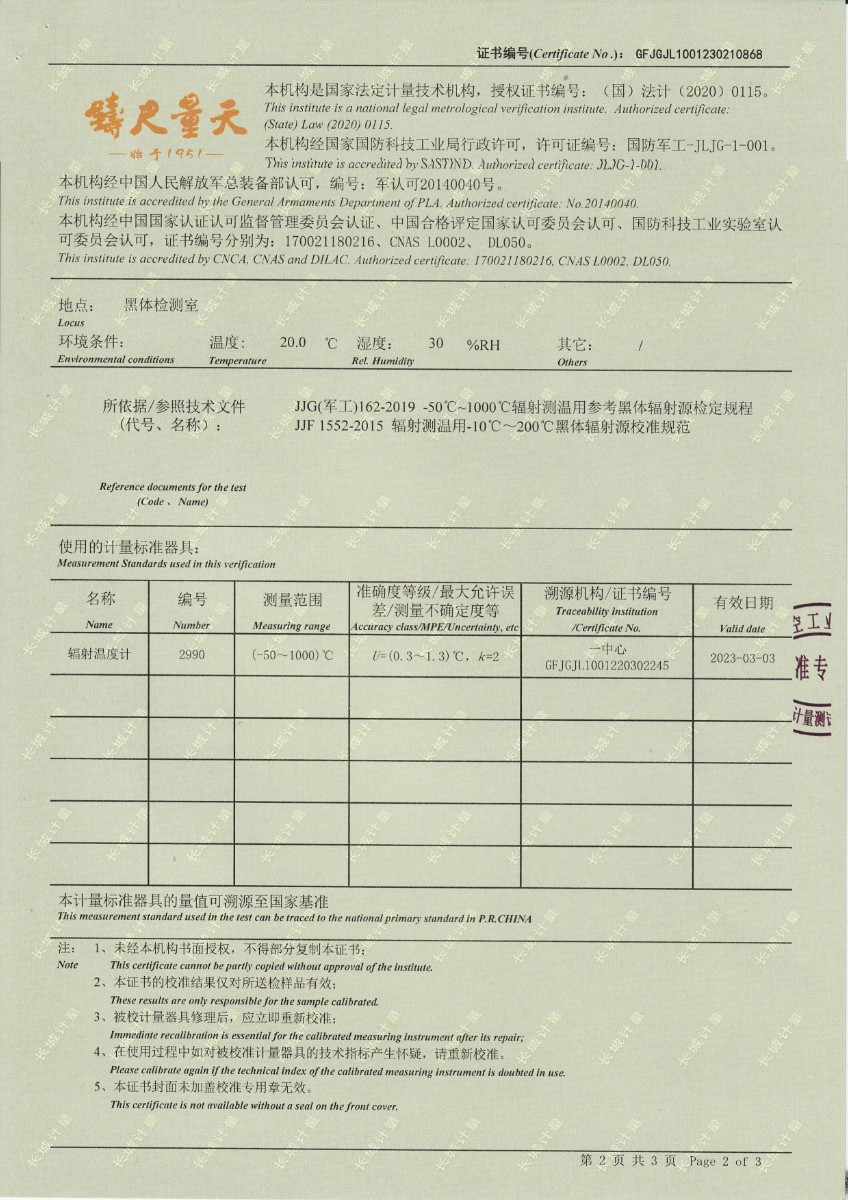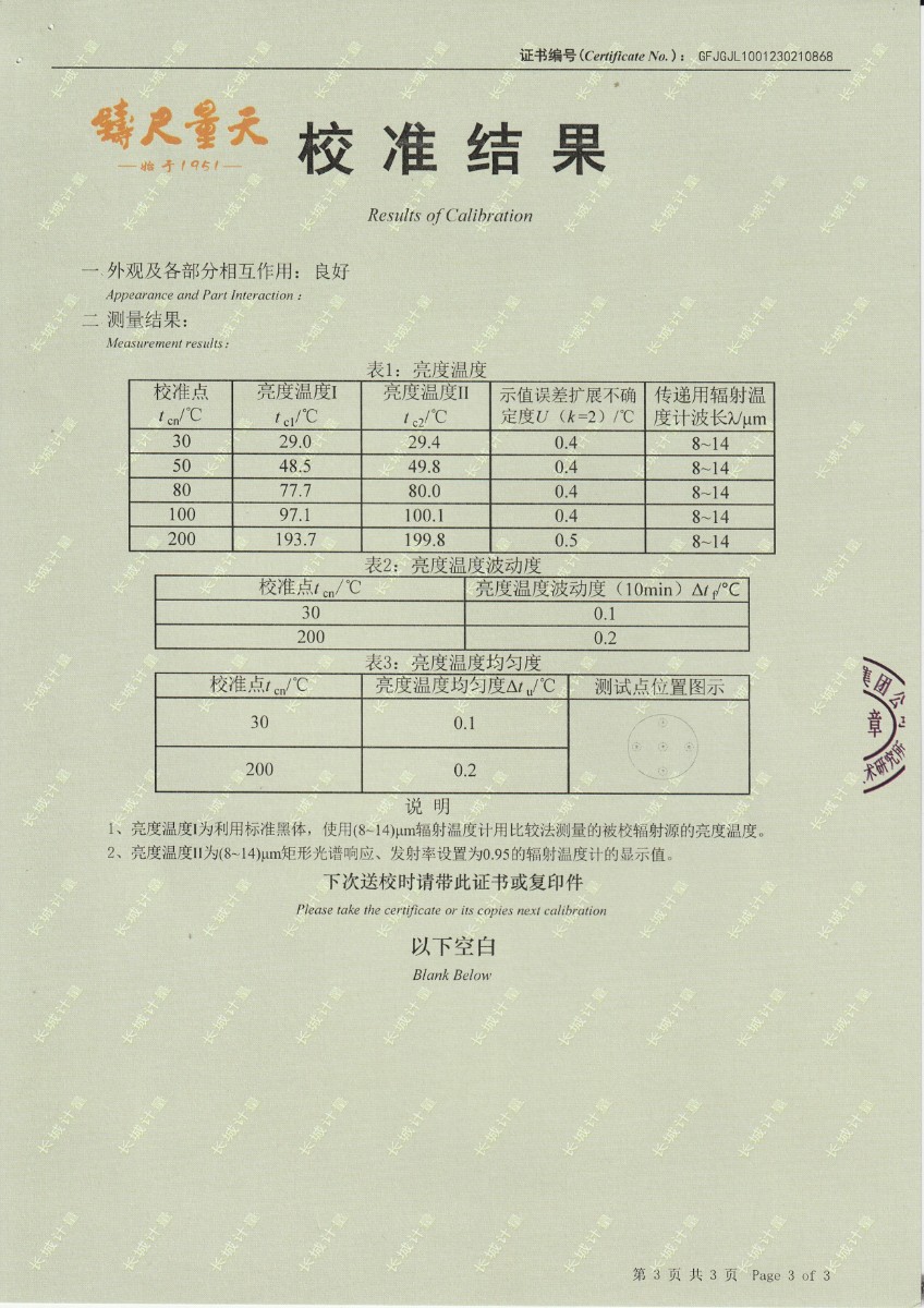 | 上一條:西安和其光電科技股份有限公司 低溫浴式黑體輻射源 校準(zhǔn)證書(shū) | 下一條:高精度制冷恒溫槽(-80~100℃)校準(zhǔn)證書(shū) |