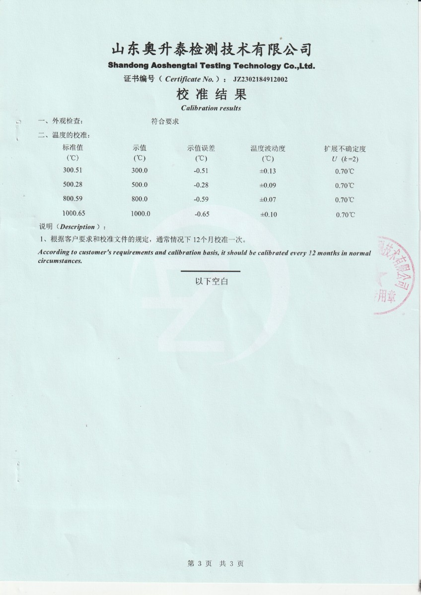 | 上一條:甘肅東興嘉宇新材料有限公司 干體溫度校驗(yàn)爐 校準(zhǔn)證書(1) | 下一條:高精度制冷恒溫槽(-80~100℃)校準(zhǔn)證書 |