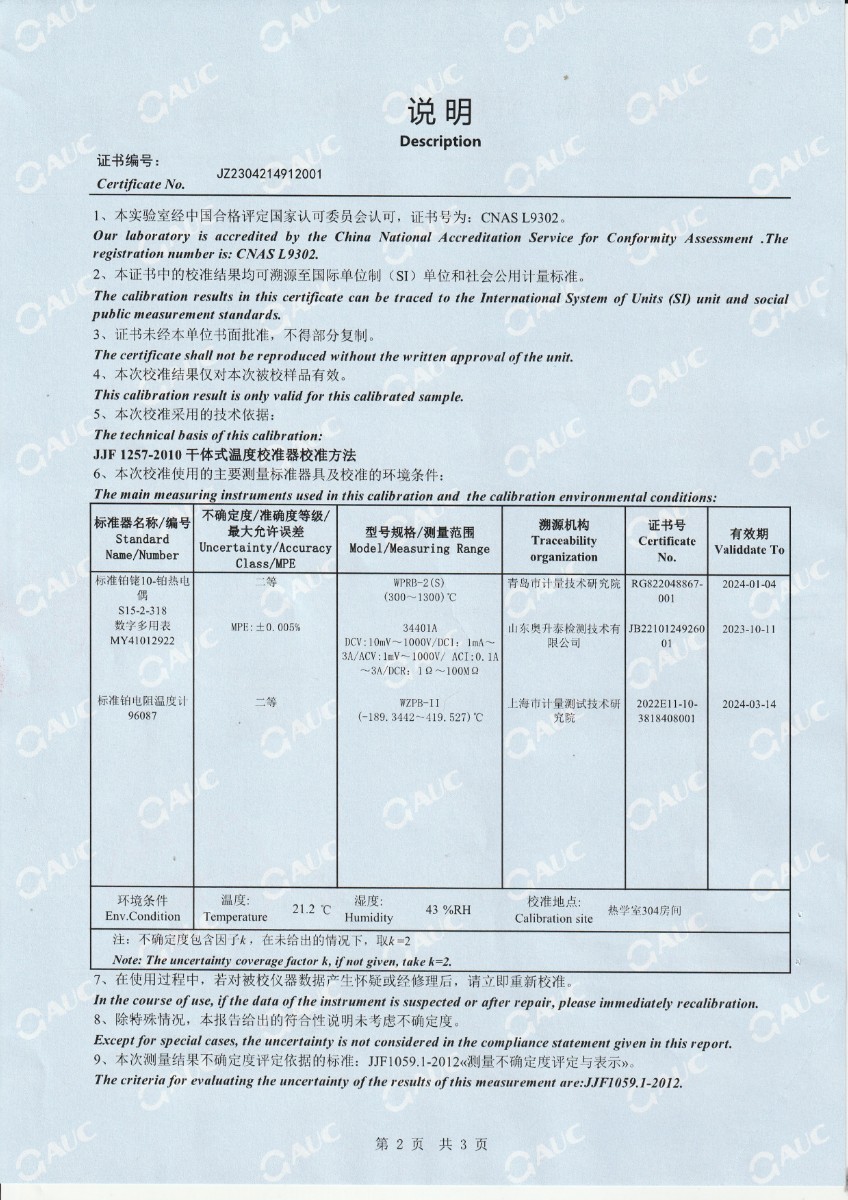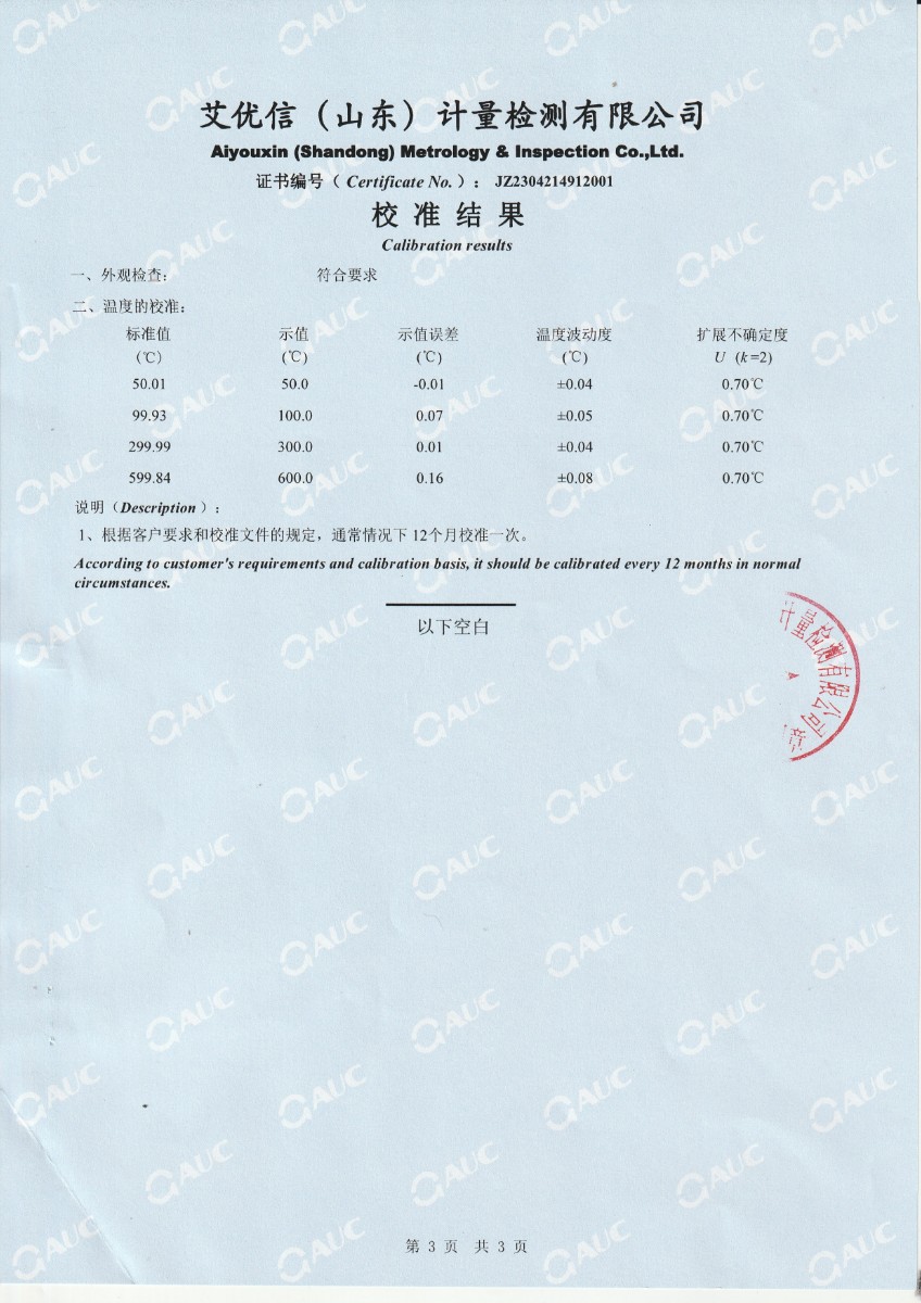 廣東先導稀材股份有限公司 干體溫度校驗爐 校準證書 2023-5-4 本文被閱讀 10824 次
