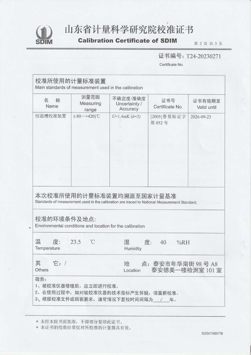 | 上一條:新疆中測(cè)測(cè)試有限公司 溫濕度標(biāo)準(zhǔn)箱 校準(zhǔn)證書 | 下一條:高精度制冷恒溫槽(-80~100℃)校準(zhǔn)證書 |
