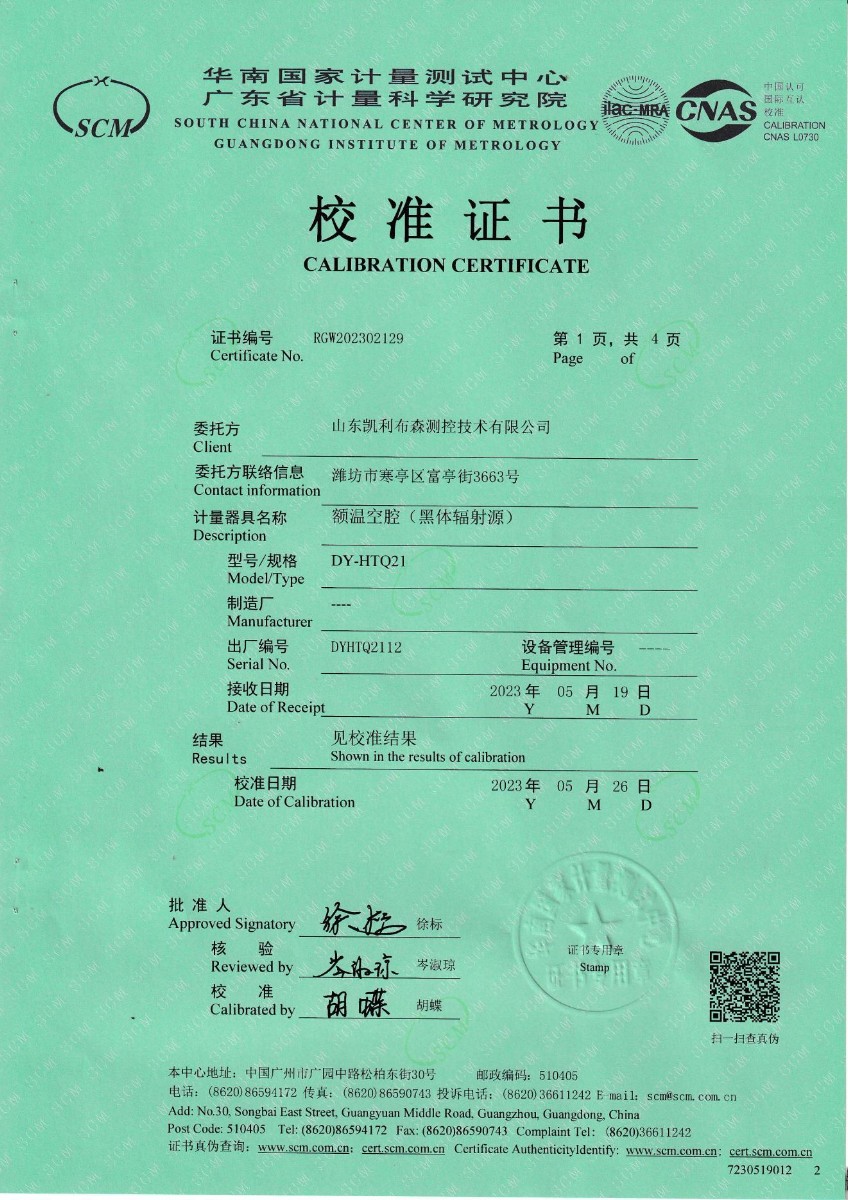 | 上一條:魯南中聯(lián)水泥有限公司 便攜式恒溫油槽 校準(zhǔn)證書 | 下一條:高精度制冷恒溫槽(-80~100℃)校準(zhǔn)證書 |