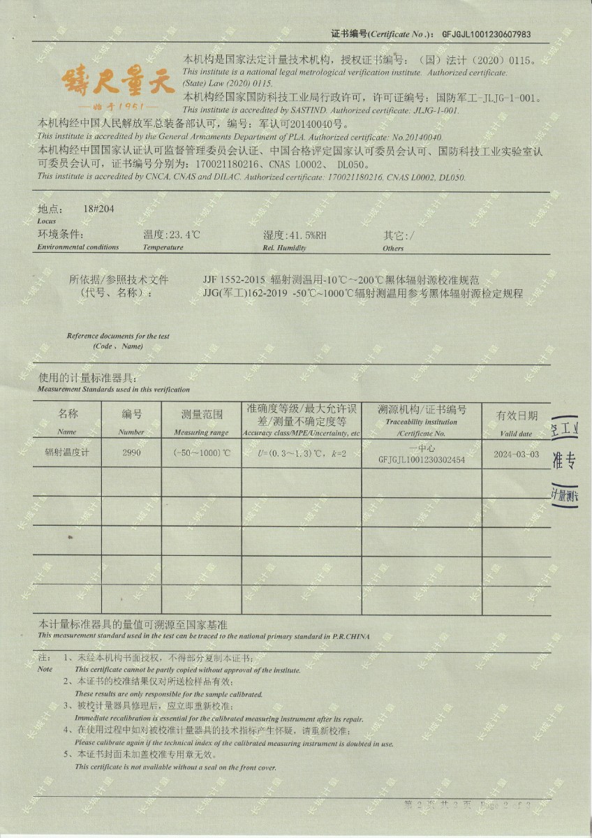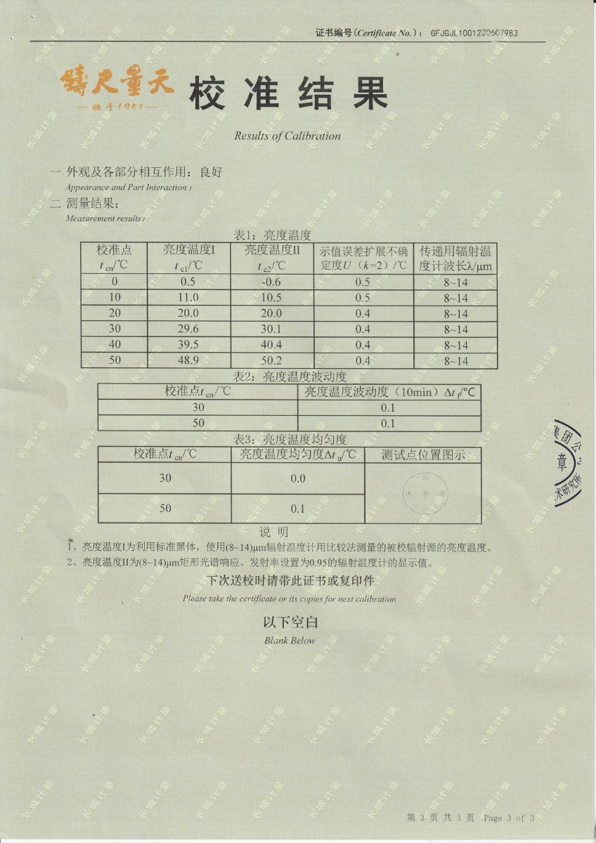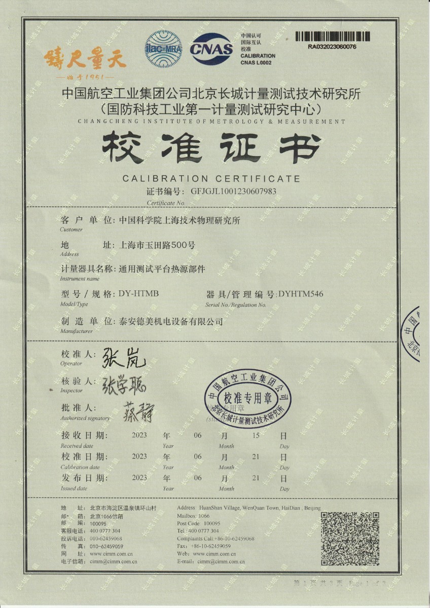 | 上一條:中國科學院上海技術(shù)物理研究所-通用測試平臺熱源部件(DYHTM545) | 下一條:高精度制冷恒溫槽(-80~100℃)校準證書 |
