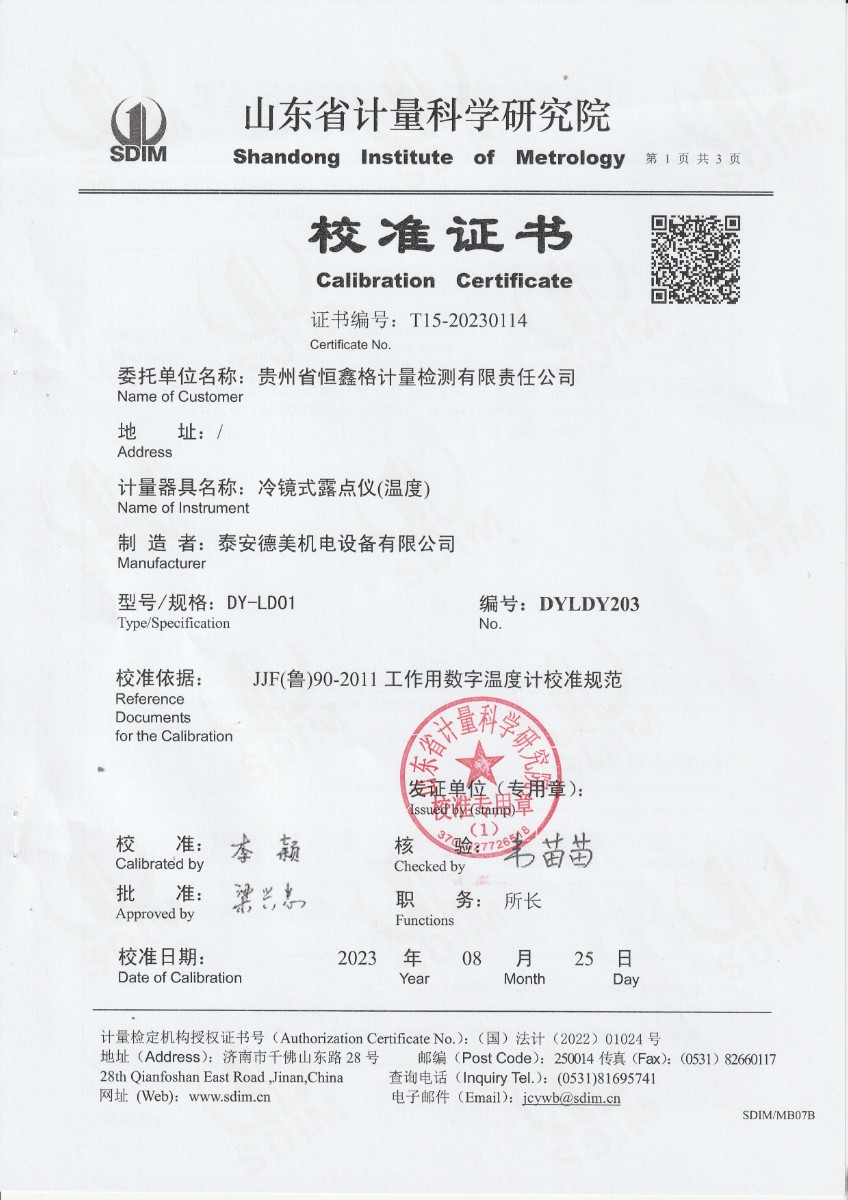 | 上一條:湖南省電網(wǎng)建設(shè)有限公司-面源黑體爐 | 下一條:高精度制冷恒溫槽(-80~100℃)校準(zhǔn)證書 |