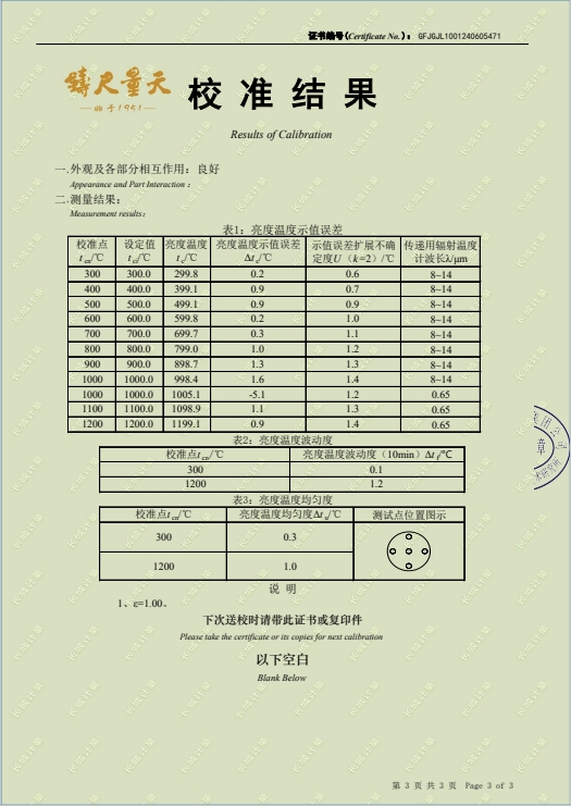 腔式黑體輻射源(300-1200℃)304所證書 2024-6-18 本文被閱讀 6964 次