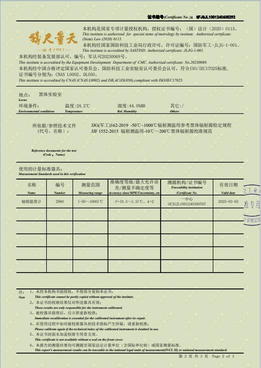面源黑體輻射源(0-80℃)304所校準(zhǔn)證書 2024-6-18 本文被閱讀 9029 次