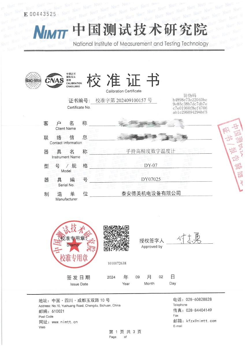 | 上一條:高精度數(shù)字溫度計(jì)(-50~200℃)校準(zhǔn)證書(shū) | 下一條:高精度制冷恒溫槽(-80~100℃)校準(zhǔn)證書(shū) |