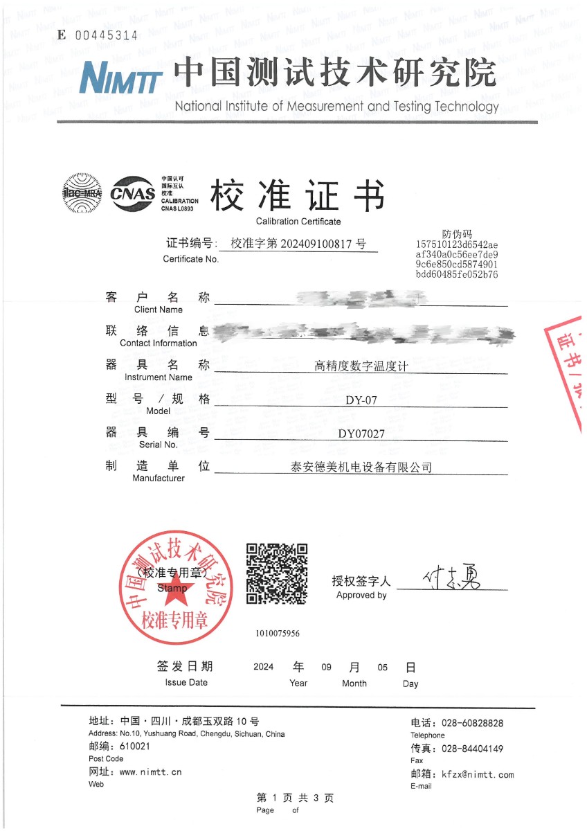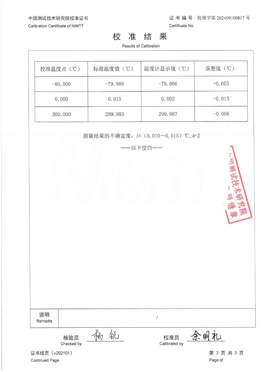 | 上一條:手持高精度數(shù)字溫度計(jì)(-80~300℃)校準(zhǔn)證書 | 下一條:高精度制冷恒溫槽(-80~100℃)校準(zhǔn)證書 |