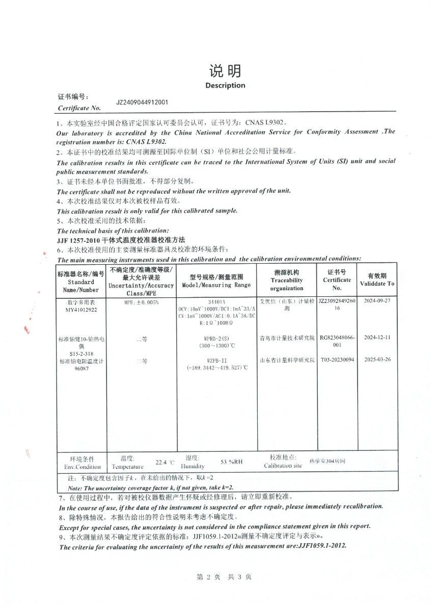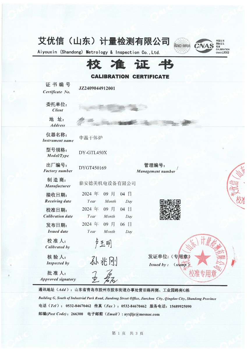 | 上一條:高溫干體(300~1200℃)校準(zhǔn)證書 | 下一條:高精度制冷恒溫槽(-80~100℃)校準(zhǔn)證書 |