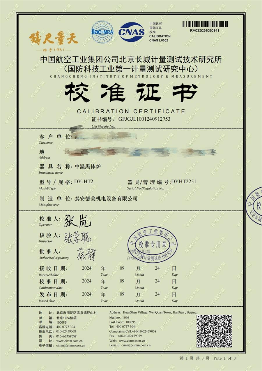 中溫黑體爐(50-500℃)校準證書 2024-10-17 本文被閱讀 5854 次