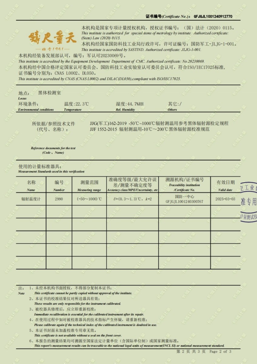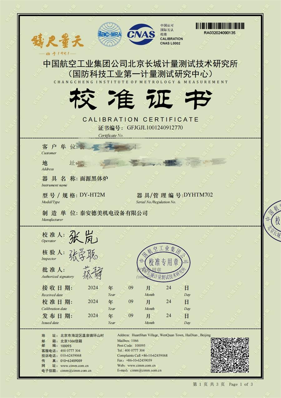 | 上一條:面源黑體爐(室溫+5-500℃)校準(zhǔn)證書 | 下一條:高精度制冷恒溫槽(-80~100℃)校準(zhǔn)證書 |