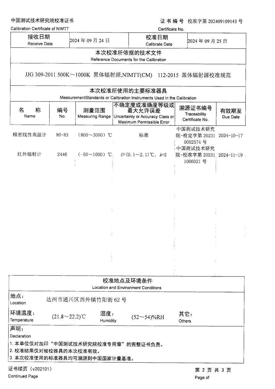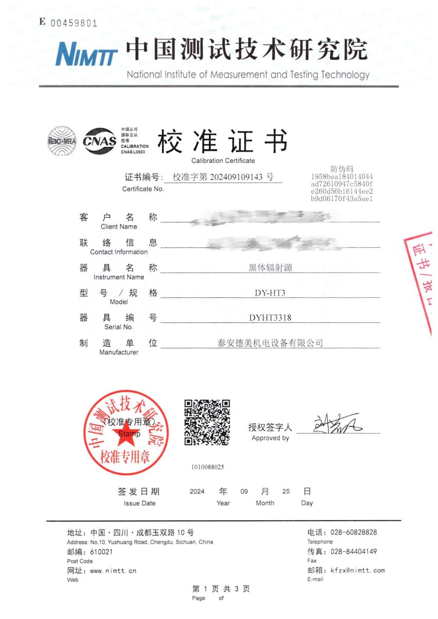 高溫腔式黑體校準(zhǔn)證書 2024-10-21 本文被閱讀 7547 次
