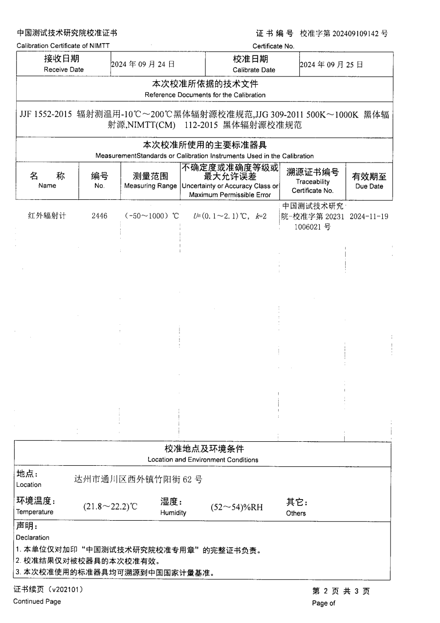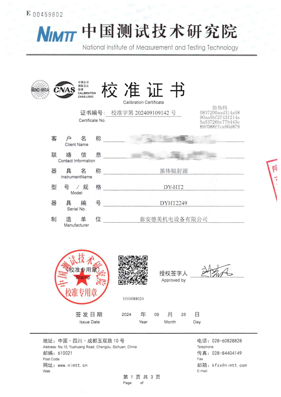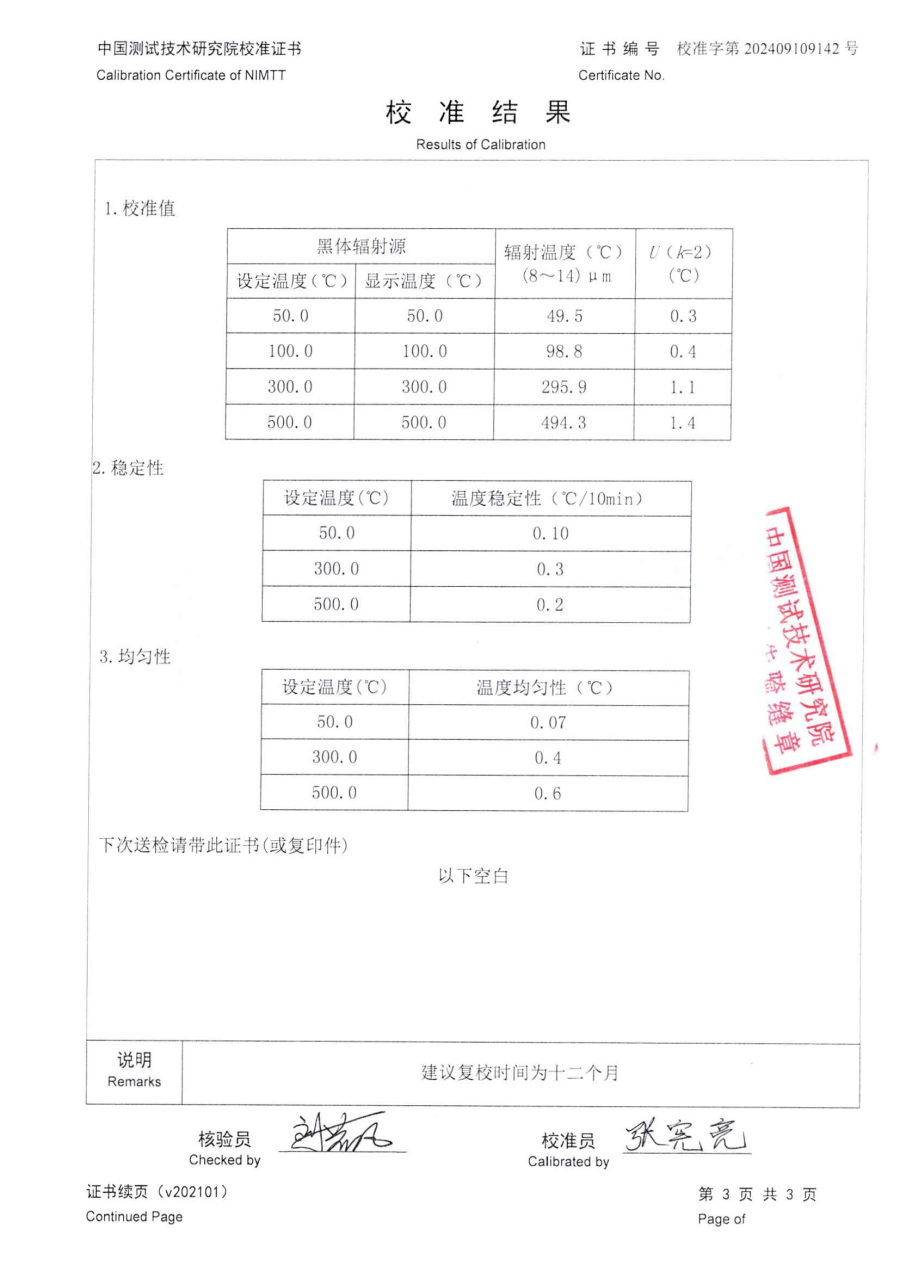 中溫腔式黑體校準證書 2024-10-21 本文被閱讀 9409 次