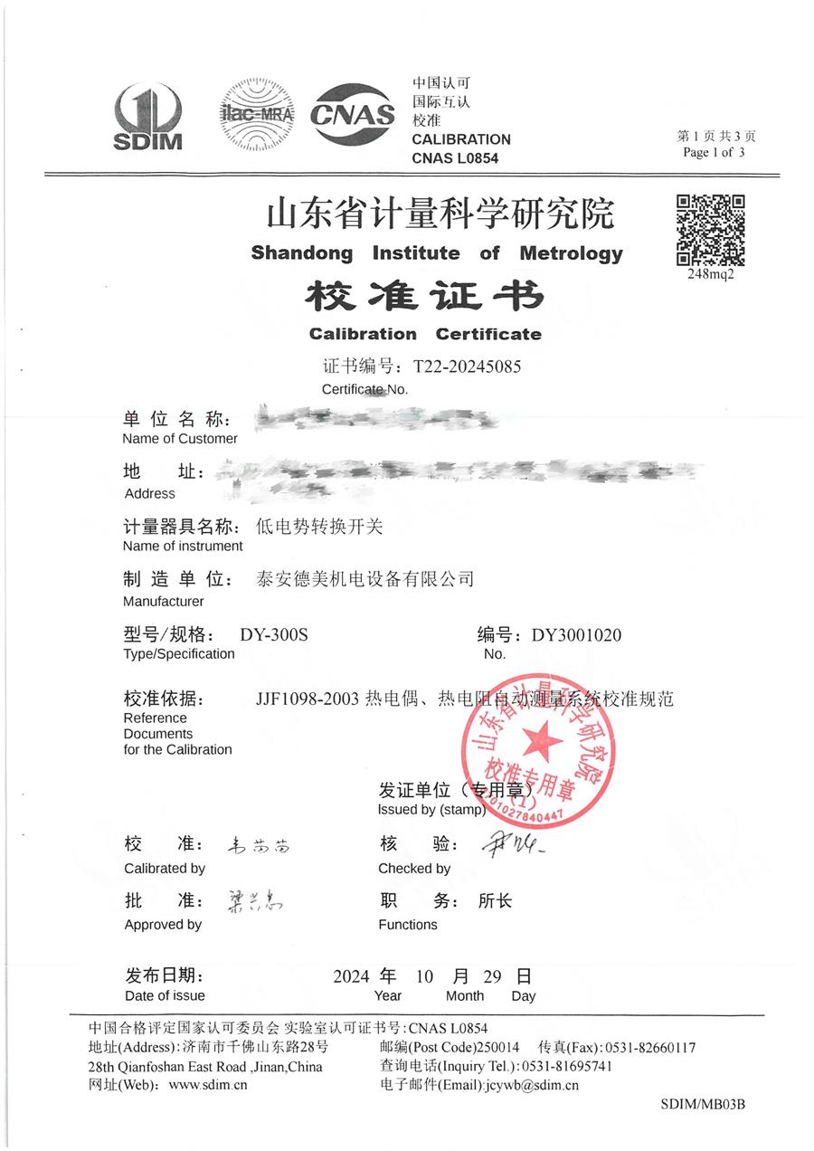 低電勢轉(zhuǎn)換開關(guān)校準證書 2024-10-31 本文被閱讀 7190 次