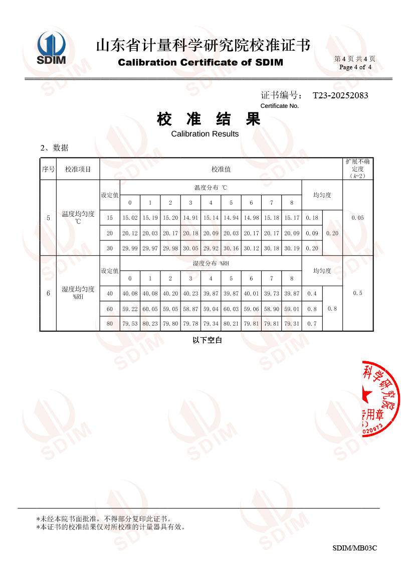 溫濕度檢定箱校準證書 2025-12-11 本文被閱讀 1193 次