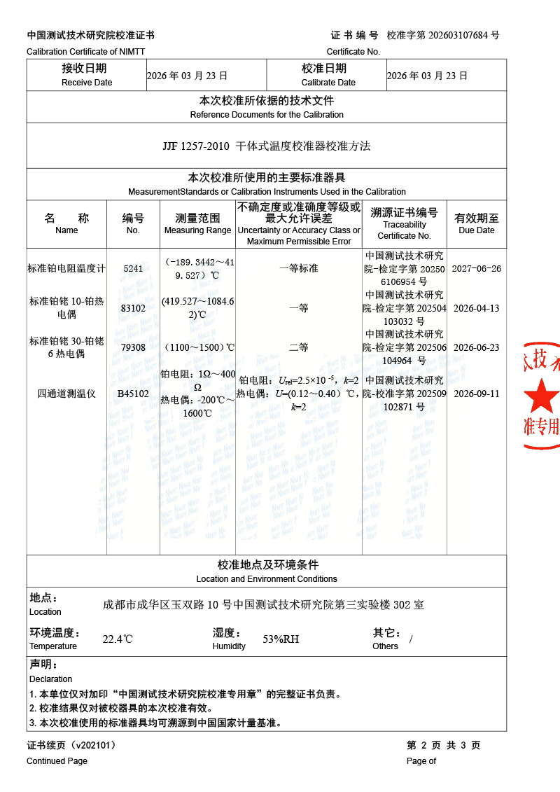 高溫干體爐-校準(zhǔn)證書 2026-3-25 本文被閱讀 19 次