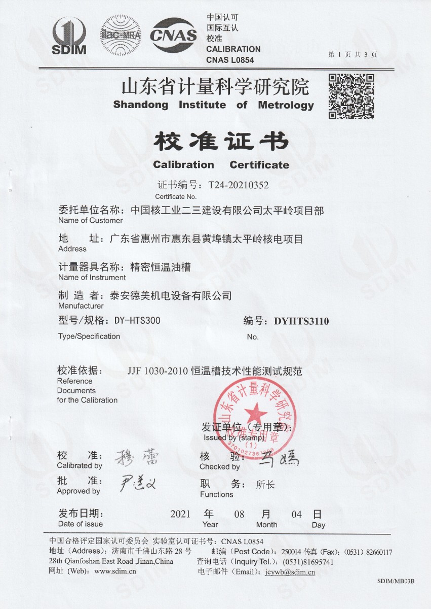 | 上一條:中國核工業(yè)二三建設有限公司太平嶺項目部-低電勢掃描器兼容系統(tǒng) | 下一條:高精度制冷恒溫槽(-80~100℃)校準證書 |