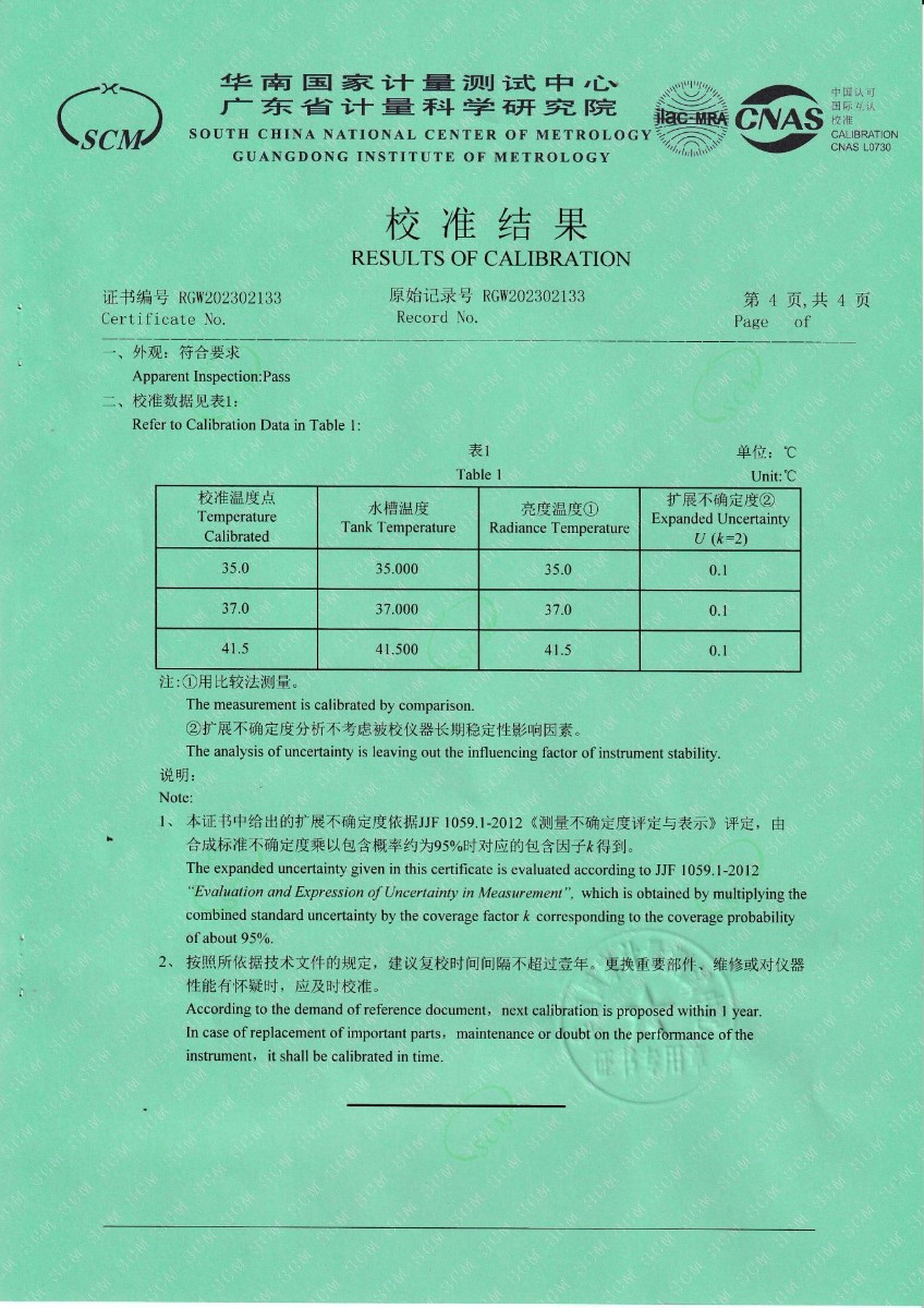 上一條:山東凱利布森測控技術(shù)有限公司 額溫空腔(黑體輻射源) 校準證書下一條:高精度制冷恒溫槽(-80~100℃)校準證書