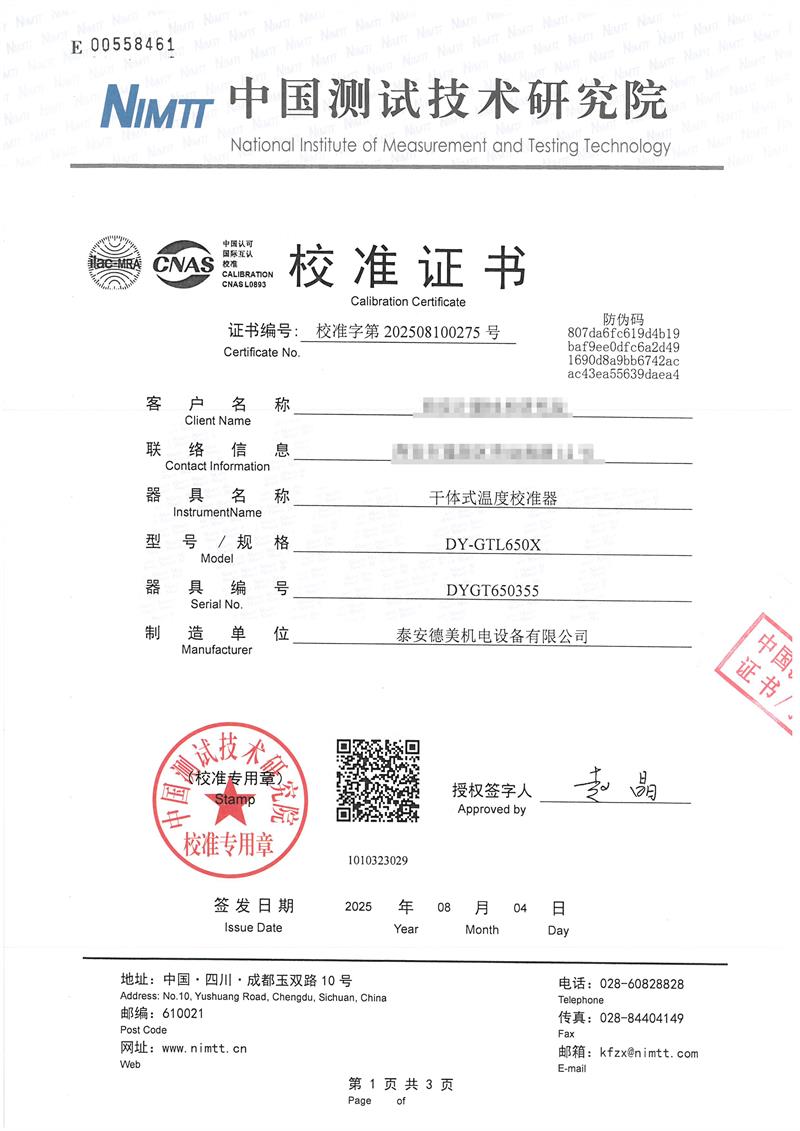 | 上一條:表面溫度計(jì)校準(zhǔn)儀(40-400℃)校準(zhǔn)證書(shū) | 下一條:高精度制冷恒溫槽(-80~100℃)校準(zhǔn)證書(shū) |