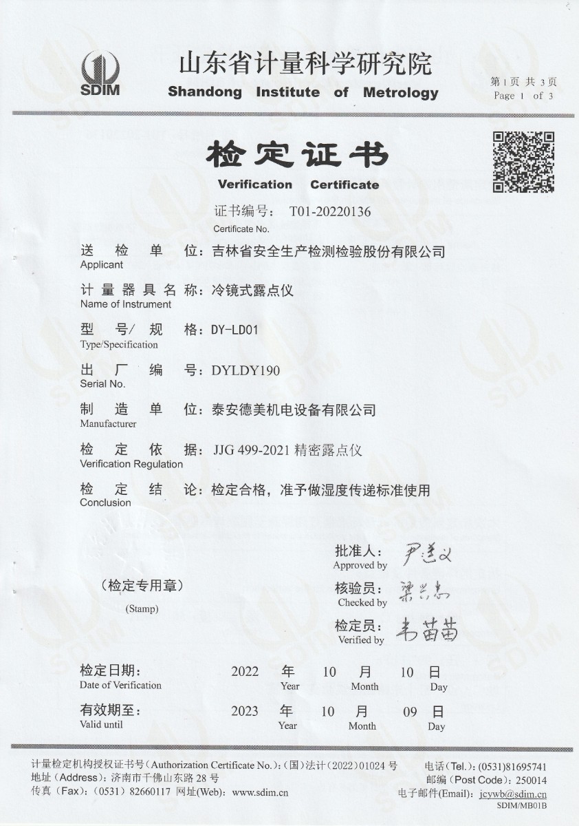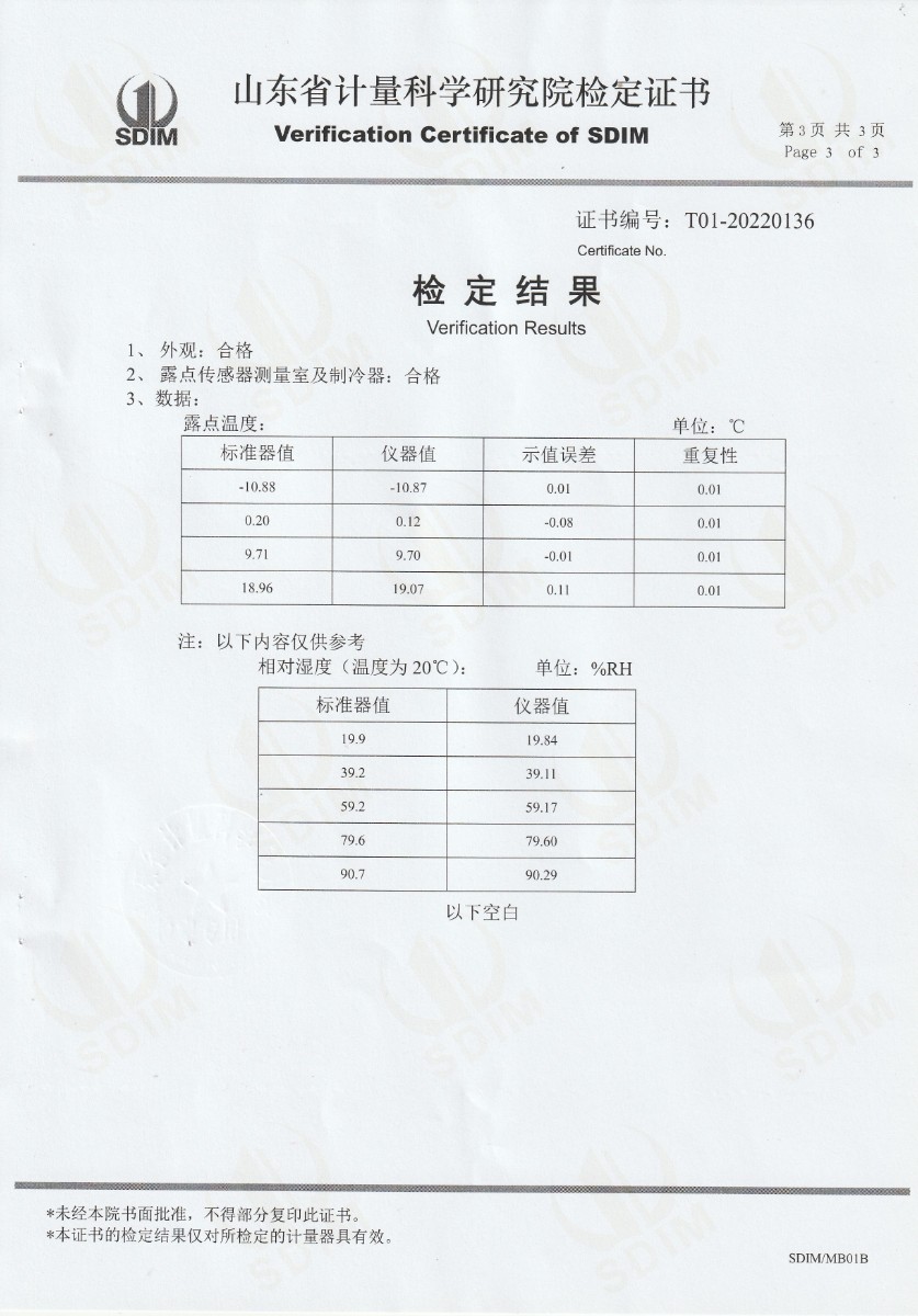 | 上一條:吉林省安全生產(chǎn)檢測檢驗股份有限公司-冷鏡式露點儀校準(zhǔn)證書 | 下一條:高精度制冷恒溫槽(-80~100℃)校準(zhǔn)證書 |