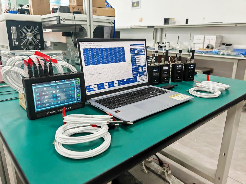 下圖(以DY-XJY03-1型號(hào)為例)所示①-⑩通道為可選擇傳感器溫度通道,可選擇類型有(熱電阻(PT100),熱電偶(K,E,J,T,B,N,R,S)),可工作在熱電阻模式或熱電偶模式下,通過無線傳輸把采集到的10通道溫度數(shù)據(jù)發(fā)送到接收器,10通道溫度采集主機(jī)還具有2路RS485、1路type-C轉(zhuǎn)串口通訊功能,可以跟具有標(biāo)準(zhǔn)modbus-RTU通訊功能的上位機(jī)或觸摸屏設(shè)備通訊,實(shí)現(xiàn)現(xiàn)場(chǎng)數(shù)據(jù)采集功能,從而具有更多的應(yīng)用場(chǎng)合。