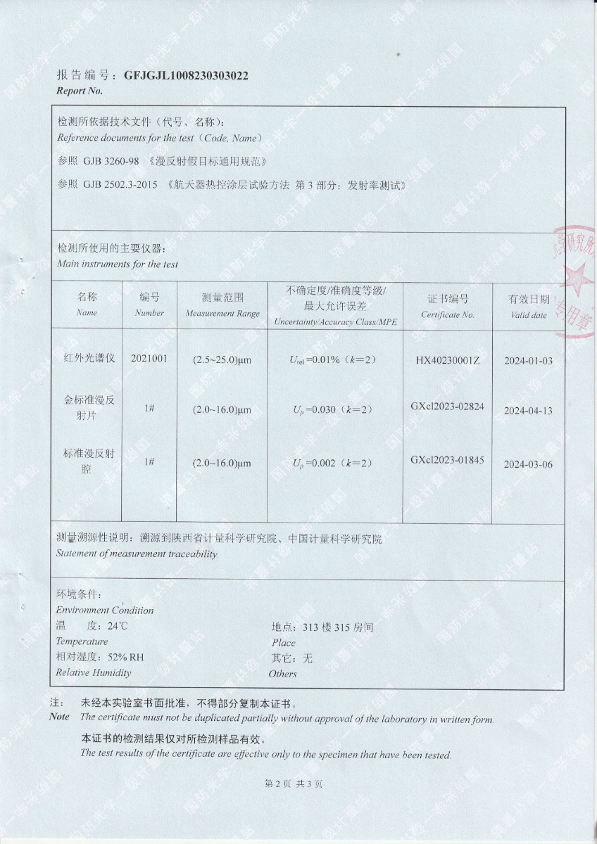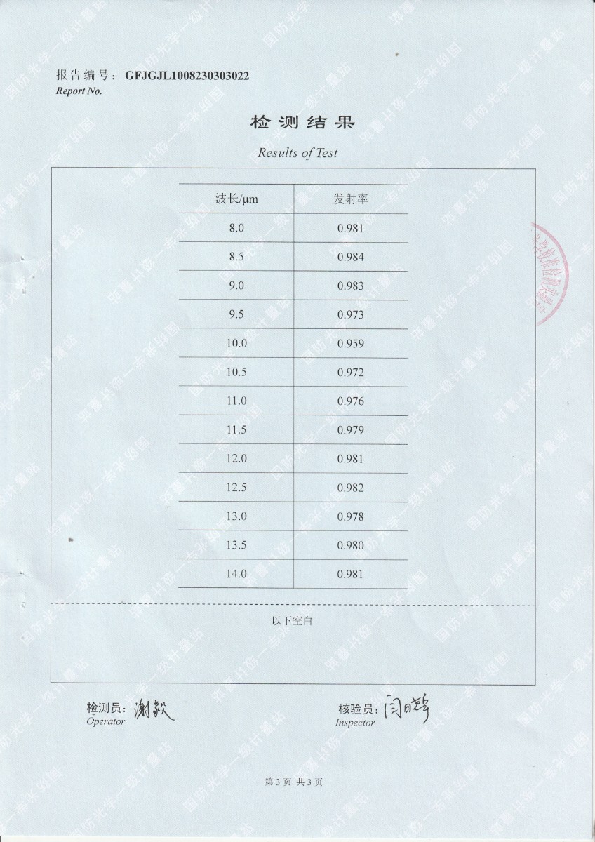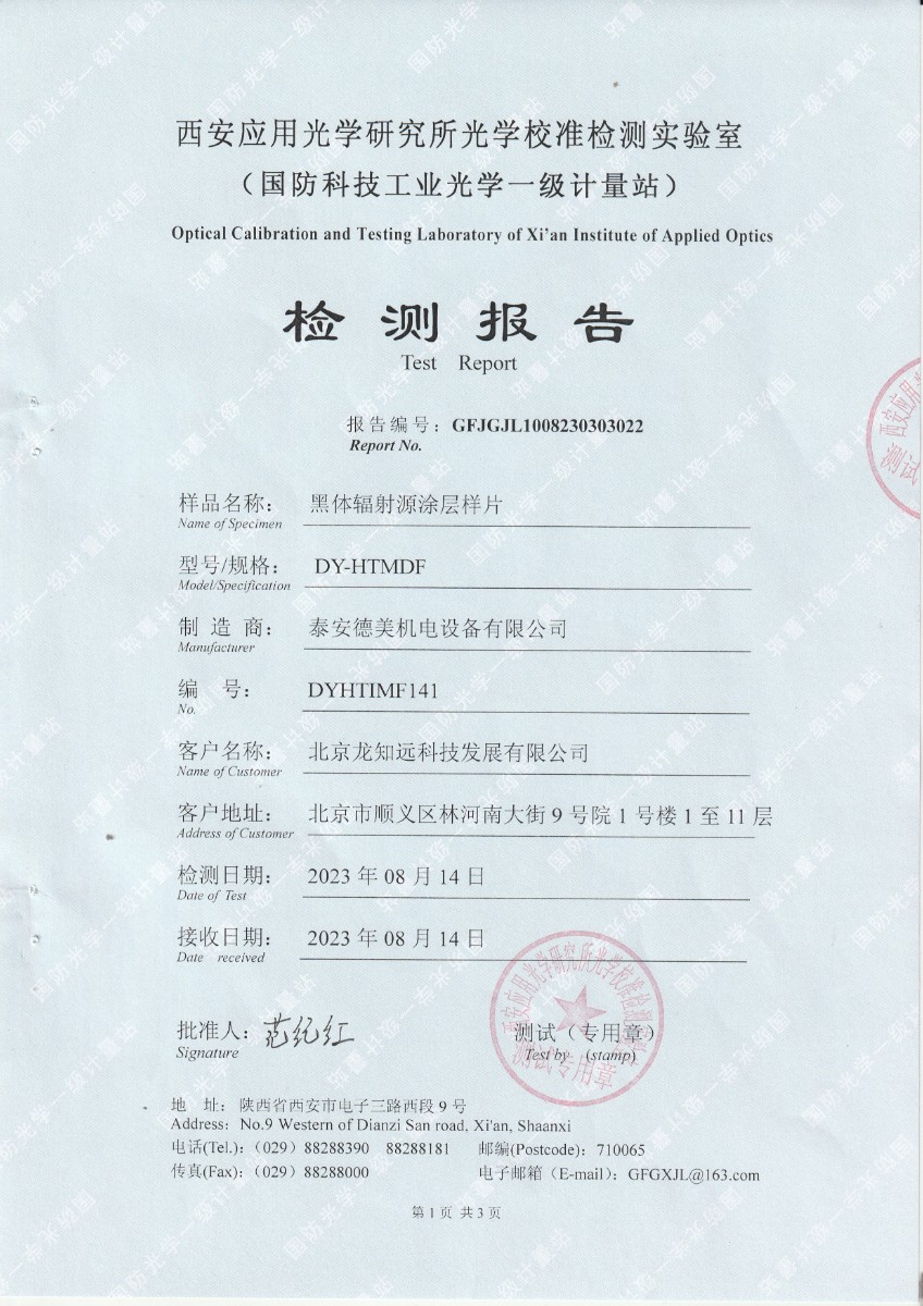 | 上一條:北京龍知遠科技發(fā)展有限公司-黑體輻射源涂層樣片DYHT1MF140檢測報告 | 下一條:高精度制冷恒溫槽(-80~100℃)校準證書 |
