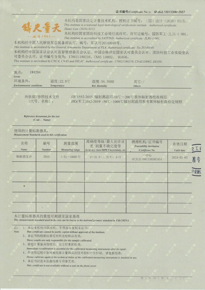 面源黑體爐DYHT1M141校準(zhǔn)證書 2023-9-20 本文被閱讀 9164 次