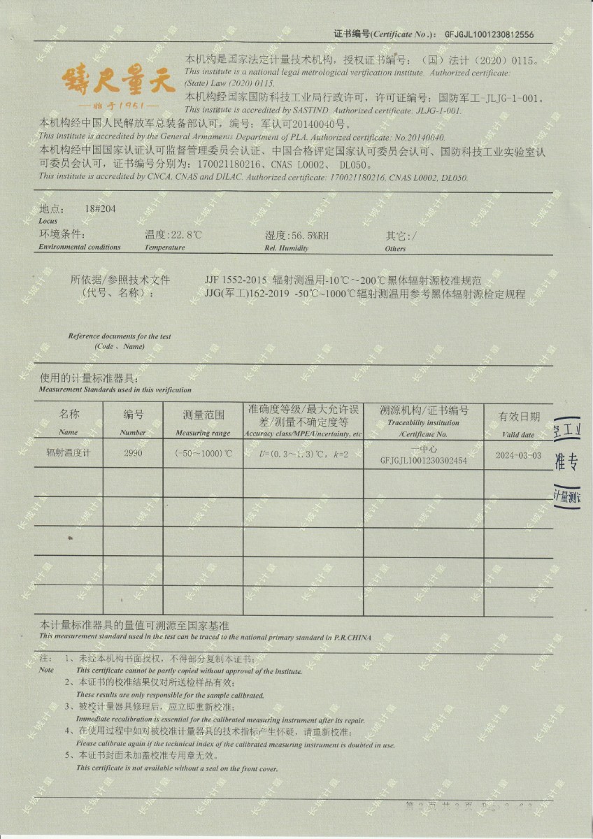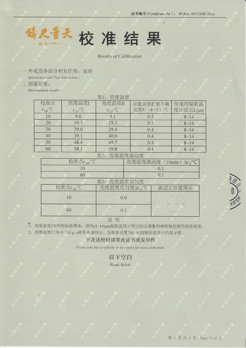 | 上一條:面源黑體爐DYHT1M141校準(zhǔn)證書(shū) | 下一條:高精度制冷恒溫槽(-80~100℃)校準(zhǔn)證書(shū) |