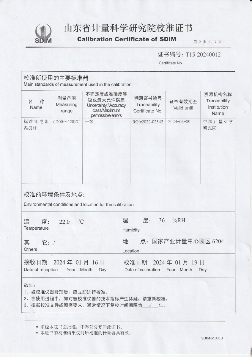 冷鏡式露點儀校準證書 2024-1-31 本文被閱讀 9651 次