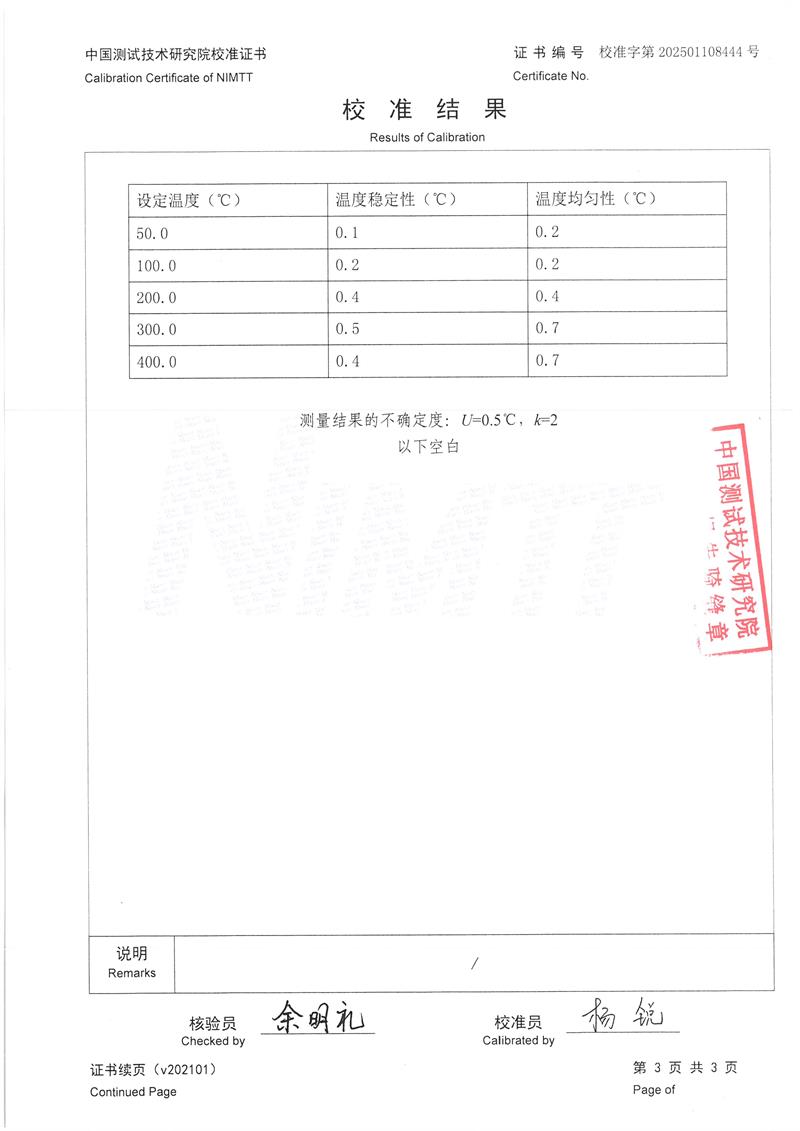| 上一條:DY-WXM150高低溫恒溫箱 | 下一條:高精度制冷恒溫槽(-80~100℃)校準(zhǔn)證書 |