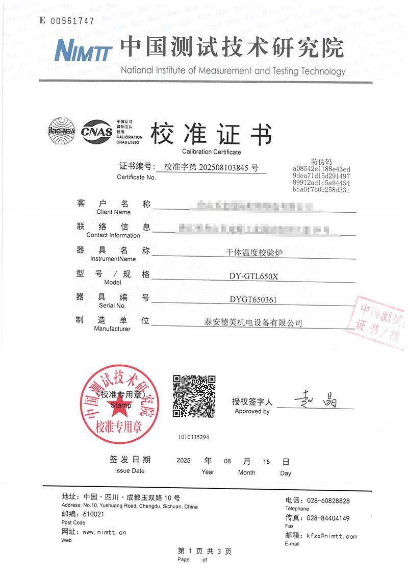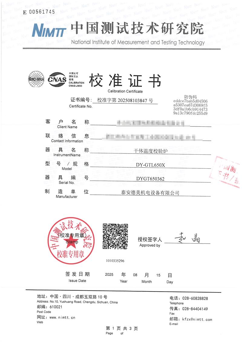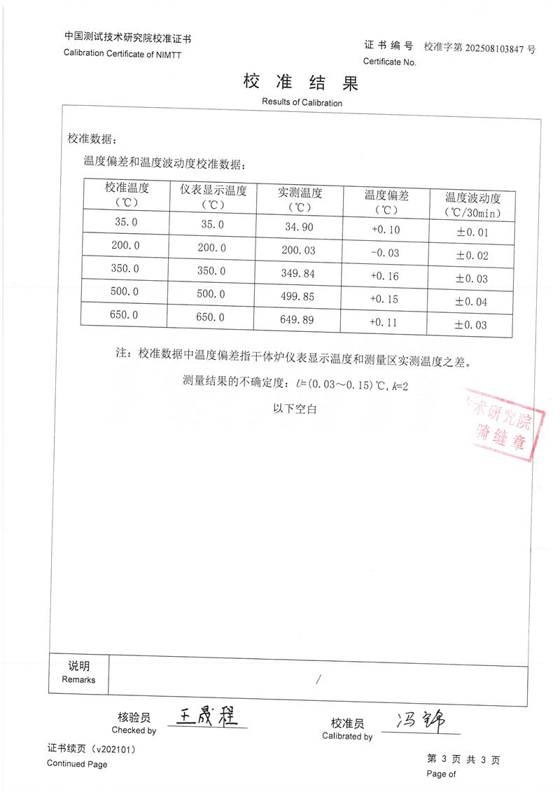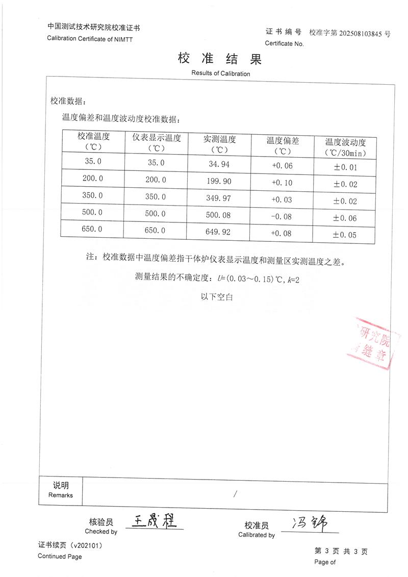 | 上一條:高精度低溫黑體(-10-100℃)校準(zhǔn)證書 | 下一條:高精度制冷恒溫槽(-80~100℃)校準(zhǔn)證書 |