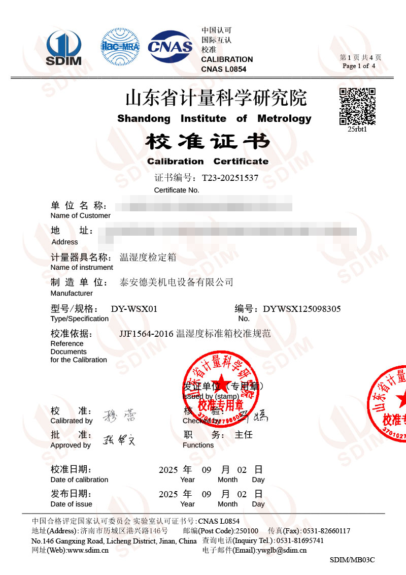 溫濕度檢定箱(-5-65℃)校準證書 2025-9-10 本文被閱讀 2423 次