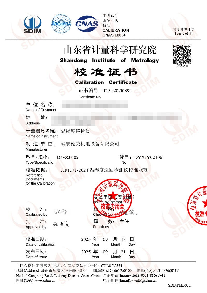 | 上一條:中溫干體爐(30-650℃)校準(zhǔn)證書(shū) | 下一條:高精度制冷恒溫槽(-80~100℃)校準(zhǔn)證書(shū) |