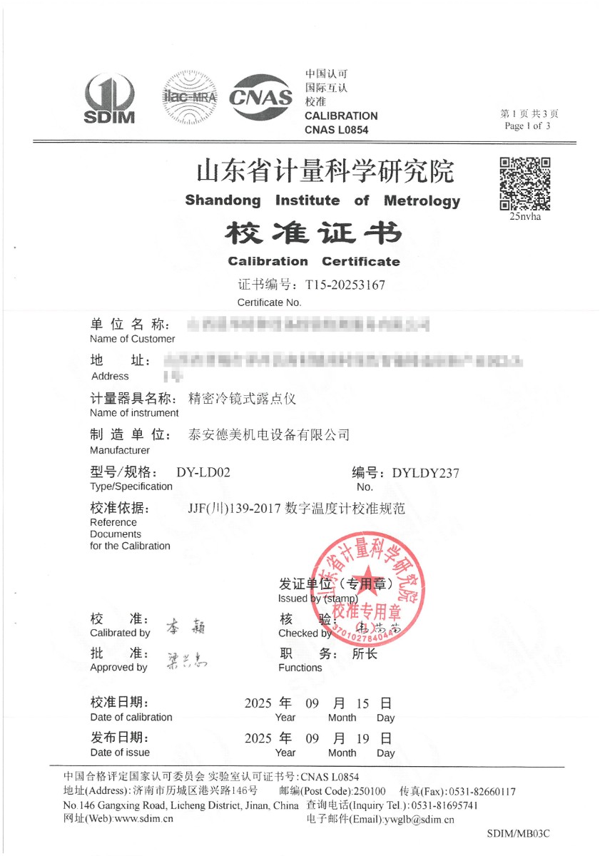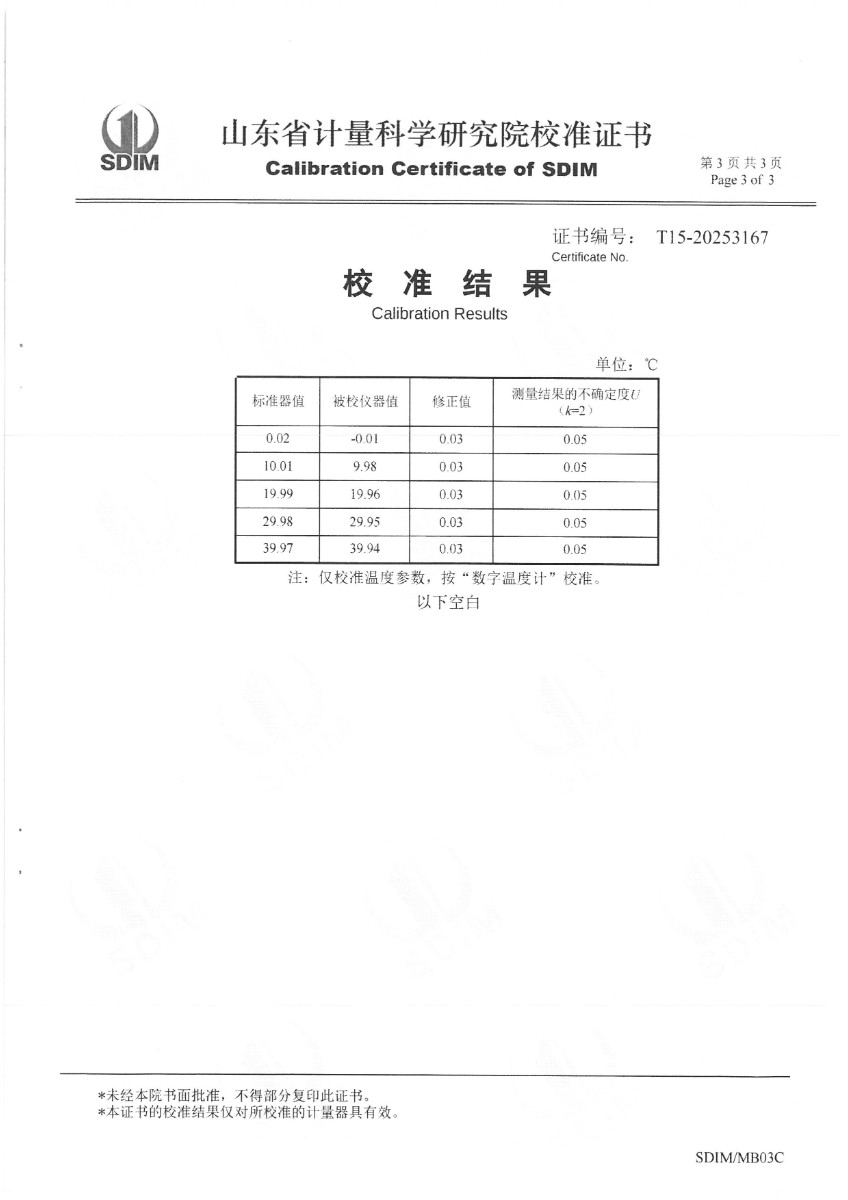 | 上一條:高精度數(shù)字溫度計(-20-100℃)校準(zhǔn)證書 | 下一條:高精度制冷恒溫槽(-80~100℃)校準(zhǔn)證書 |