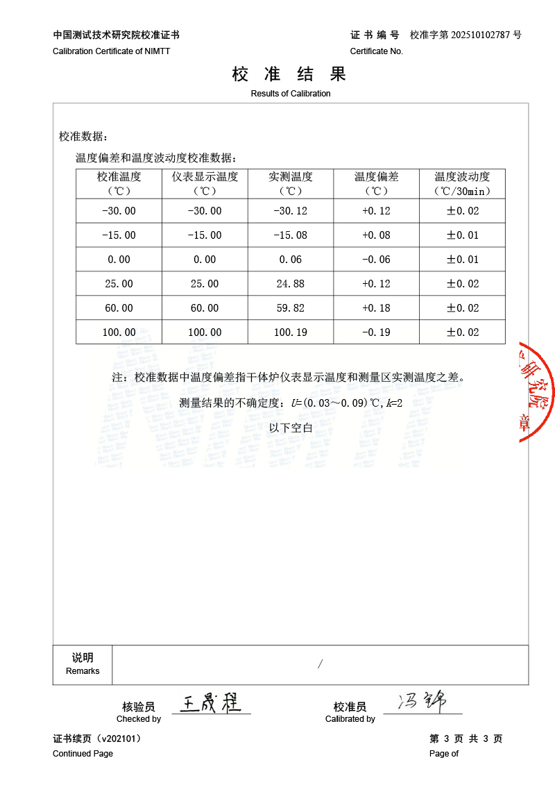 上一條:超低溫面源黑體爐(-40-80℃)校準證書下一條:高精度制冷恒溫槽(-80~100℃)校準證書