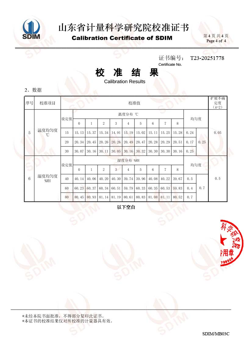 溫濕度檢定箱(-5~65℃)校準(zhǔn)證書