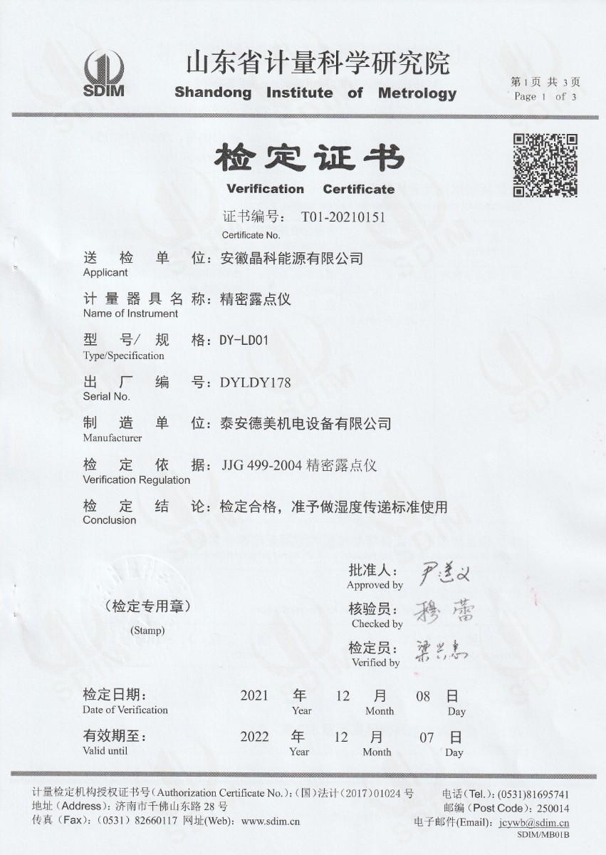 | 上一條:南京理工大學(xué)-黑體輻射源校準(zhǔn)證書1050℃ | 下一條:高精度制冷恒溫槽(-80~100℃)校準(zhǔn)證書 |
